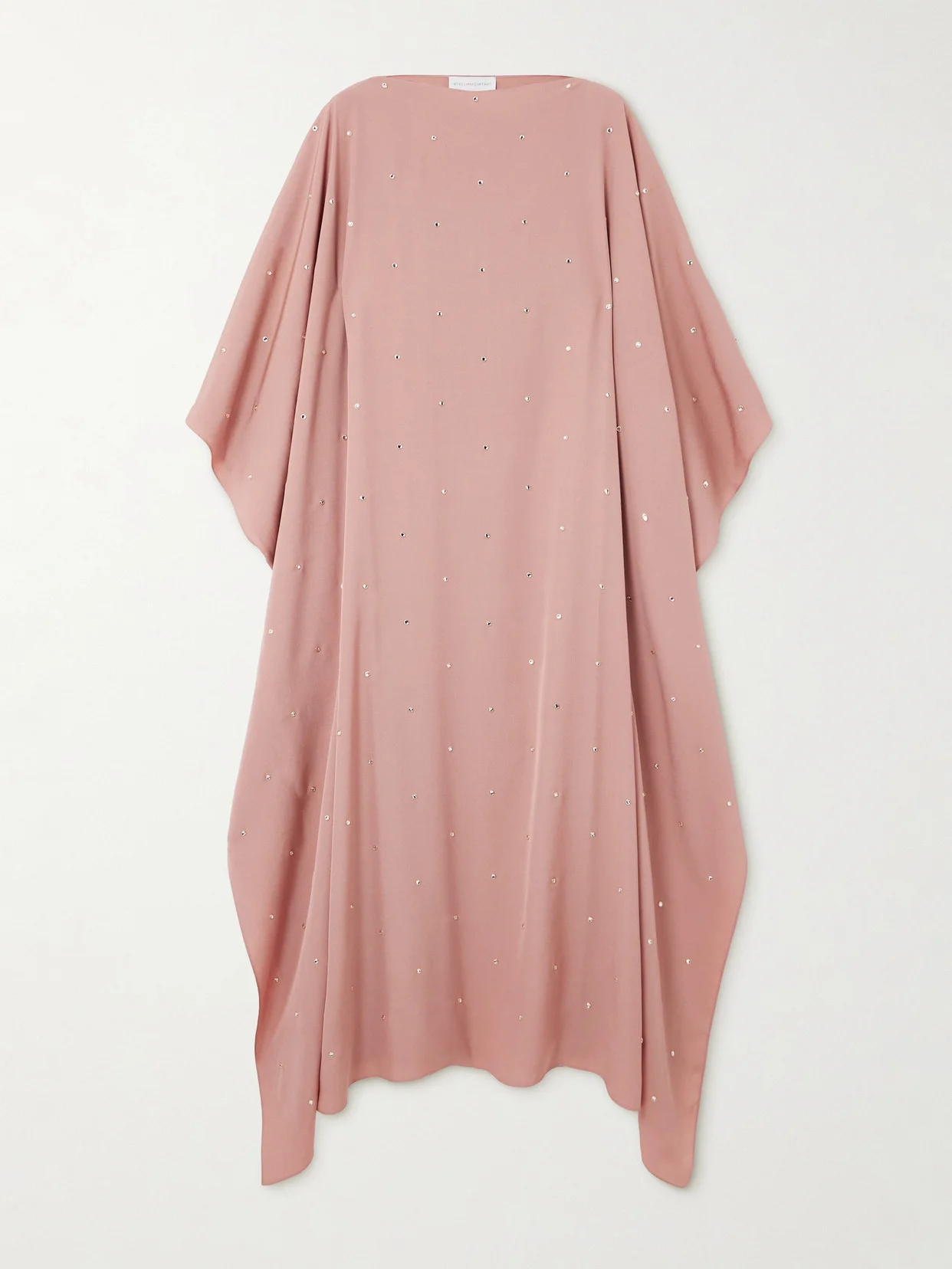 Stella McCartney's kaftan is decorated with bezel-set crystals throughout, adding plenty of sparkle and glamour. It's made from fluid crepe that drapes loosely over your frame and has wide sleeves and a curved hem.