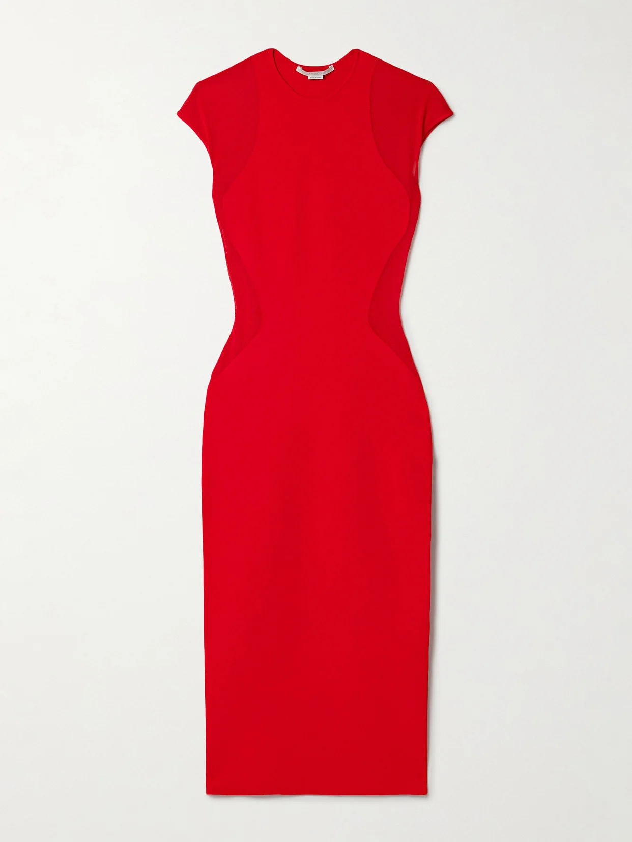 Stella McCartney's 'Miracle' dress is made from stretch-knit that's blended with certified cellulose and has a paneled design that highlights your figure. It fits close to the body and is complete with cap sleeves and a high neckline. Balance the bold 'Lipstick Red' shade with soft, glowing makeup. Lower-Impact Materials. This product is made using at least 50% lower-impact materials or ingredients. Find out more about our NET SUSTAIN criteria here.