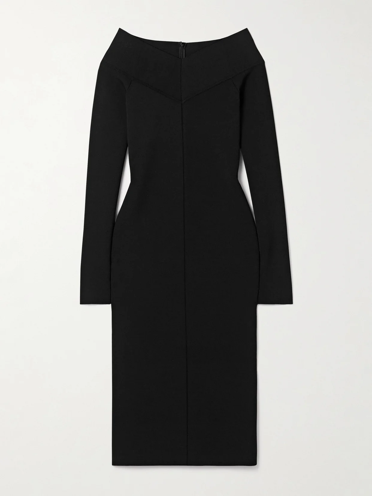 Stella McCartney's dress is knitted with certified viscose. It has an angled Bardot neckline and split at the back hem. Accessorize with pumps and a clutch. Lower-Impact Materials. This product is made using at least 50% lower-impact materials or ingredients. Find out more about our NET SUSTAIN criteria here.