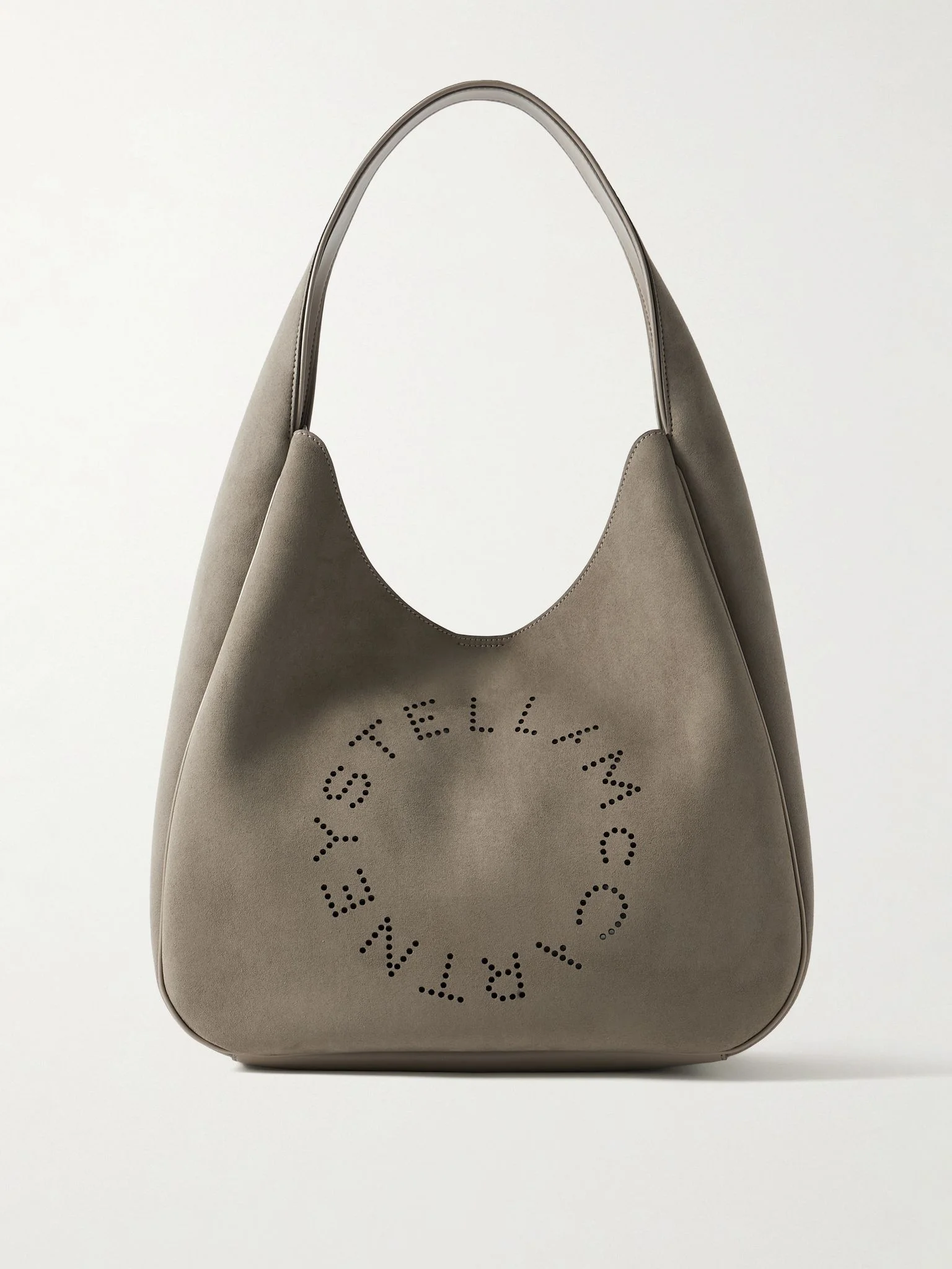 Stella McCartney's tote is perforated with the signature circular logo at the center. It's been made in Italy from soft, slouchy vegan material in a versatile taupe shade that will complement just about anything in your wardrobe. Keep your phone, wallet and a spare pair of flats inside. Details & Care - Taupe vegan material - Top handle - Internal slip pocket - Unlined - Magnetic-fastening tab at open top - Comes with dust bag