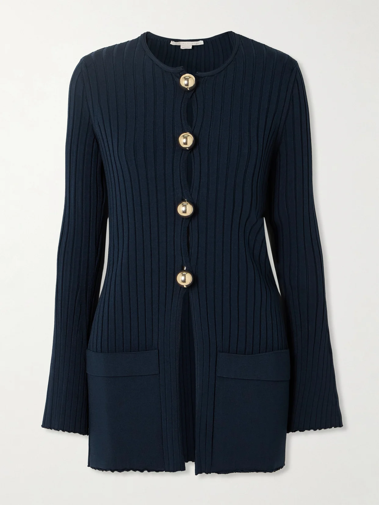Stella McCartney's Fall '24 collection is filled with elegant staples like this cardigan. It's rib-knitted for a straight fit with lightly fluted sleeves and secures with large gold-tone buttons, revealing flashes of skin between each fastening. Wear yours with skinny pants and heels.