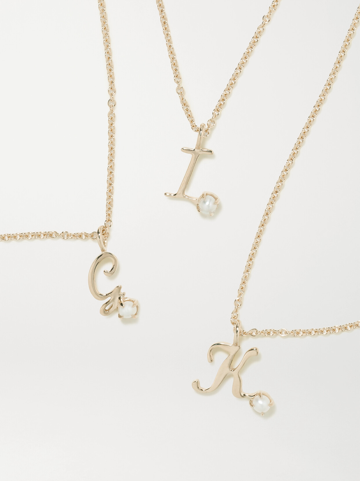 STONE & STRAND's 'Alphabet' necklace can be personalized with any letter - why not get one for yourself and a loved one? Hand-cast from 9-karat gold, it's strung with a cursive charm and lustrous pearl. Make it your everyday signature.