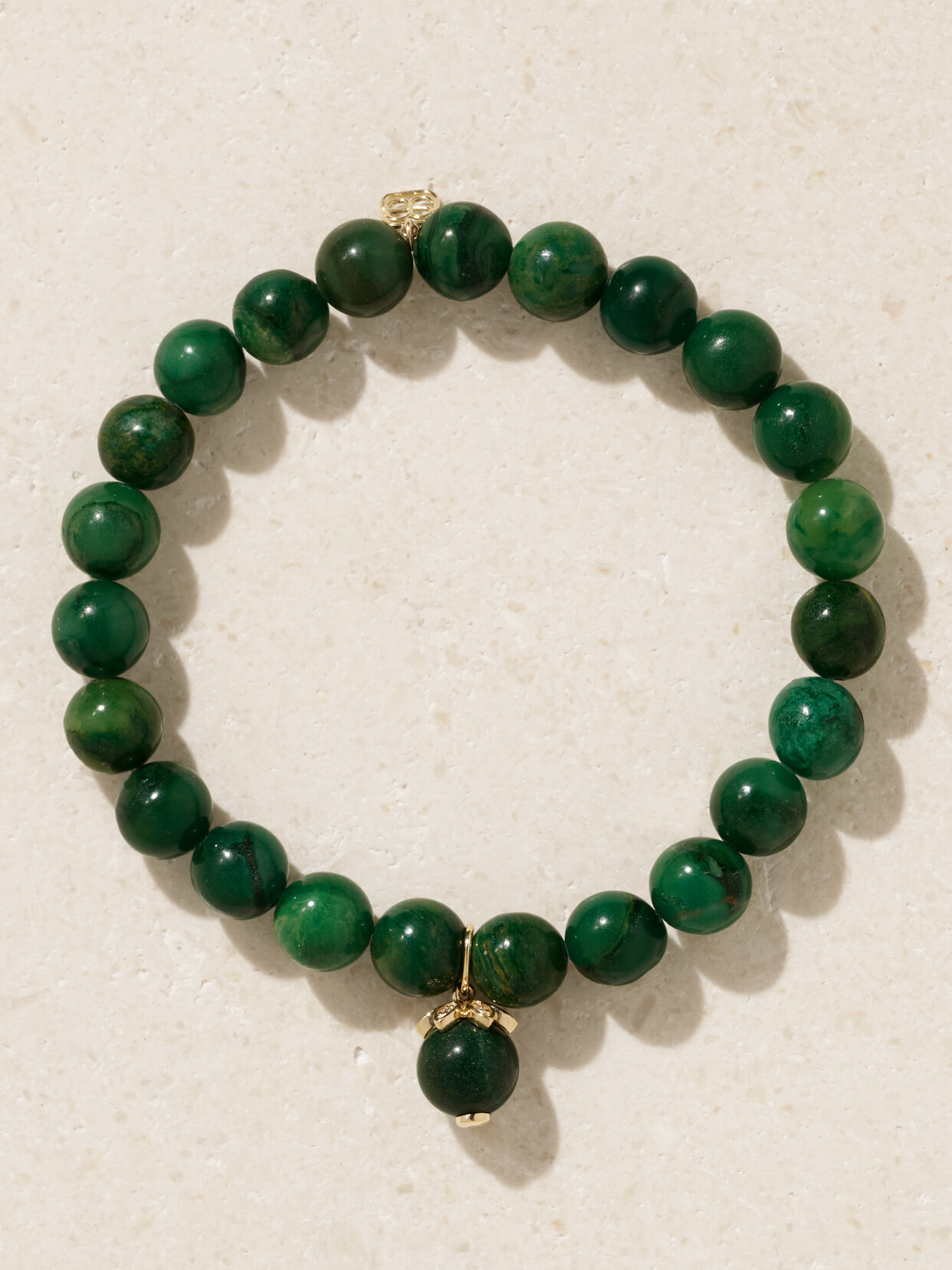 Rooted in symbolism, Sydney Evan's signature beaded bracelets make such meaningful gifts. This 'Eye' version is strung with green verdite beads - the center one is topped with a 14-karat gold evil eye charm, which is said to ward off negativity and bring good luck.
