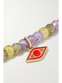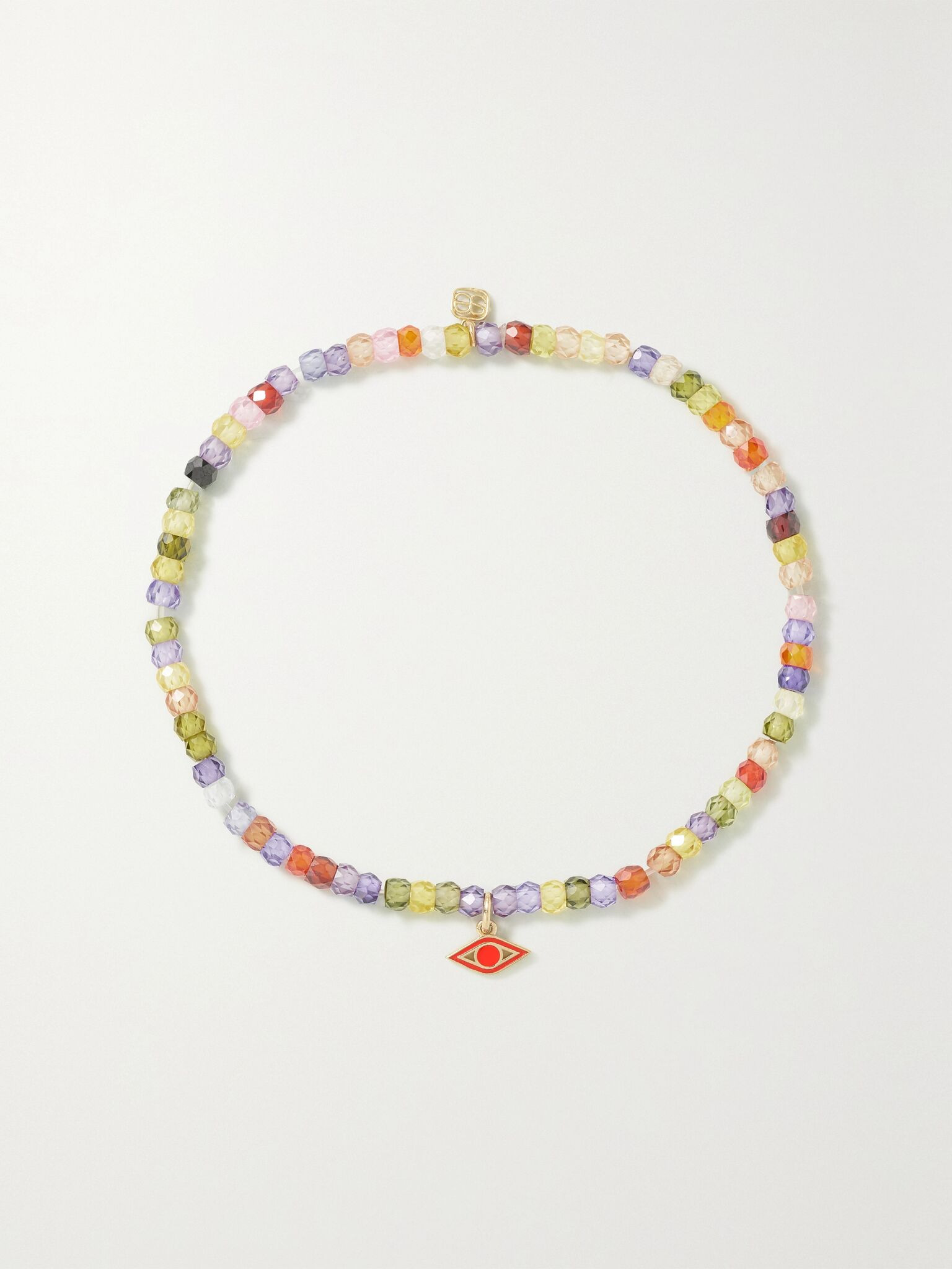 This colorful version of Sydney Evan's signature 'Mini Evil Eye' bracelet is strung with a rainbow of faceted zirconia, ensuring it looks great with any outfit and will stack effortlessly alongside any other gemstones. The dainty charm is cast from 14-karat gold and enameled in brilliant red. Details & Care - Multicolored zirconia - Slips on - Comes in a designer-stamped box