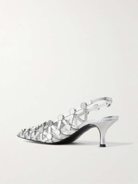 Grid studded metallic leather slingback pumps Silver