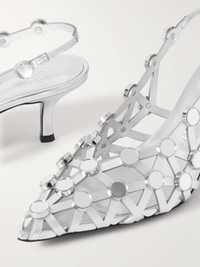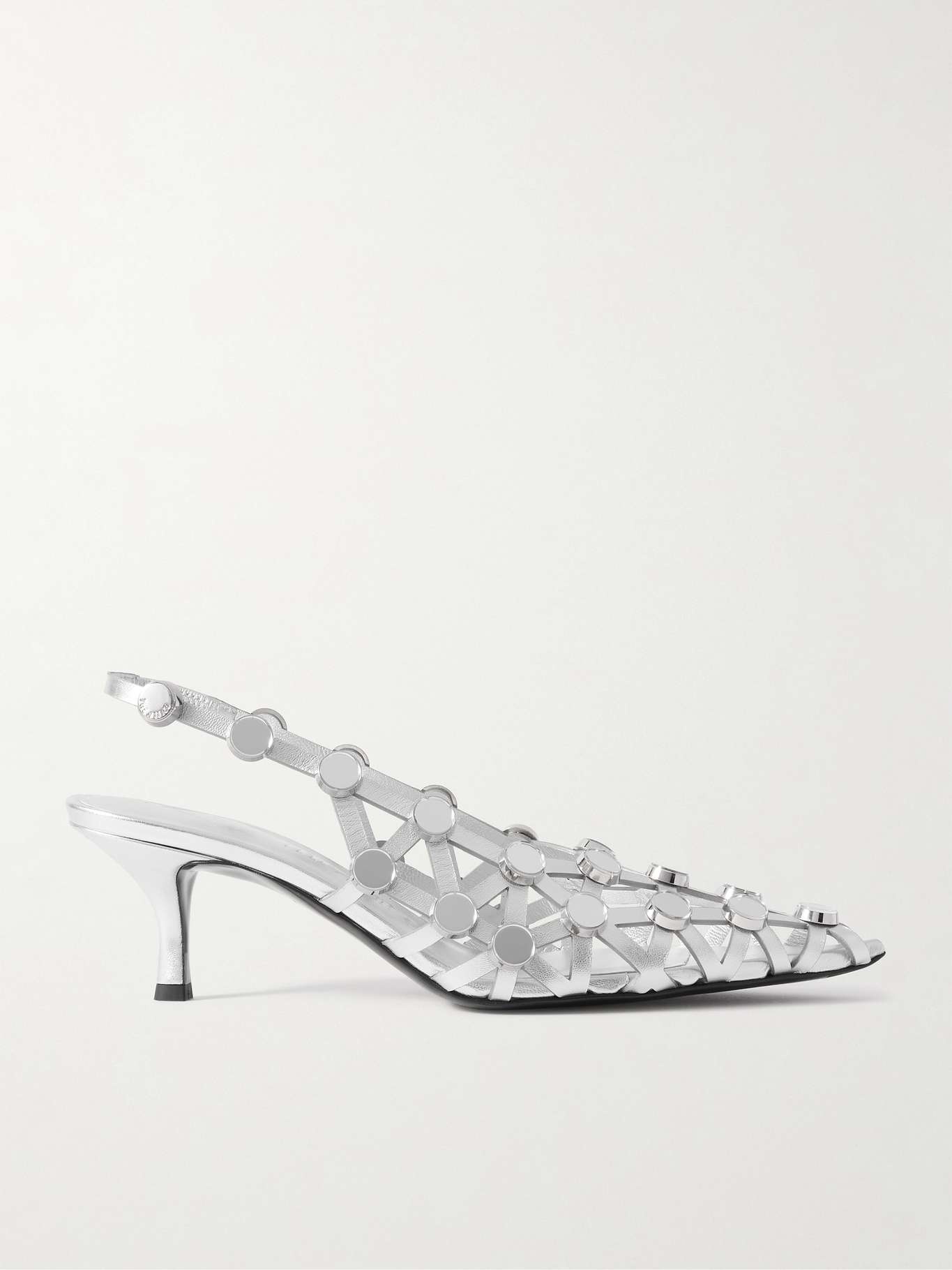 EDITORS'NOTES The Attico's pumps are woven from strips of silver leather to achieve a complex 'Grid' design. They're embellished with tonal light-catching studs and have pointed toes and an elasticated slingback strap. SIZE & FIT - Fits true to size, take your normal size - Italian sizing DETAILS & CARE - Heel measures approximately 50mm/ 2 inches - Silver leather (Goat) - Elasticated slingback strap