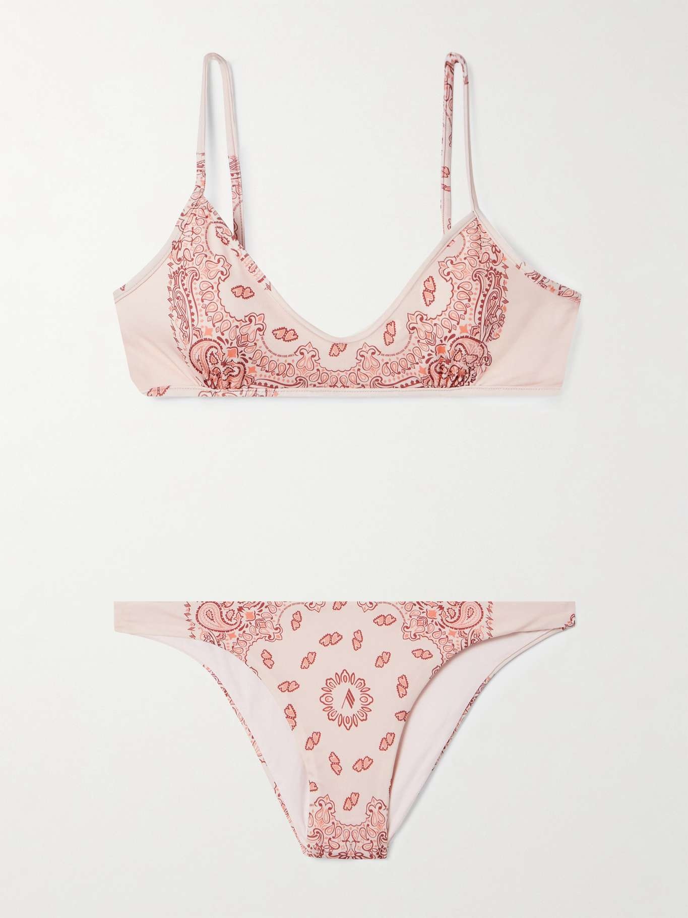 EDITORS'NOTES The Attico's bikini is printed with a traditional bandana-inspired motif. Made from stretch fabric, the top has a scooped neck and slim straps, while the low-rise briefs offer medium coverage. It's best suited for those with smaller busts. SIZE & FIT Model measurements: - Fits true to size, take your normal size - Those with a C cup or above may wish to take the next size up - Low-rise briefs with medium coverage - Model is 177cm/ 5'10", bra size 32B and is wearing a size Small - Bust: 81cm/ 32" - Waist: 61cm/ 24” - Hip: 81cm/ 32" DETAILS & CARE - Multicolored stretch-polyamide - Lined at base - 80% polyamide, 20% elastane; lining: 84% polyester, 16% elastane - Hand wash - Lotion, sunscreen, oil and chlorine can cause discoloration of this item; this is not a manufacturing defect. Please follow care instructions to keep your swimwear in the best condition