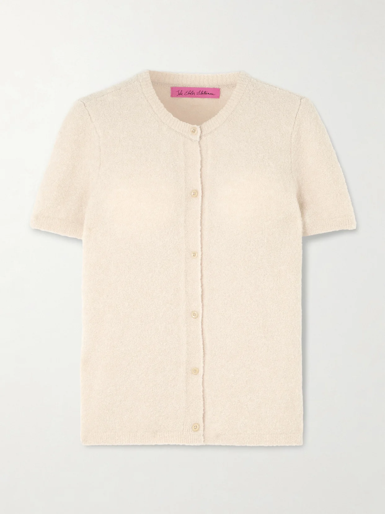 With a little care, The Elder Statesman's knitwear will last in your wardrobe for years and years. This cardigan is knitted from super soft cashmere and silk-blend boucle in a cute short-sleeve profile. Wear yours with wide-leg denim or printed skirts.