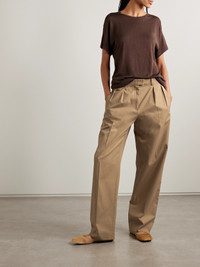The Row's collections are filled with simple silhouettes and neutral colors, ensuring you can style them easily for years to come. These high-rise pants are made from soft, brushed cotton and cashmere-blend twill and have pleats through the wide legs.