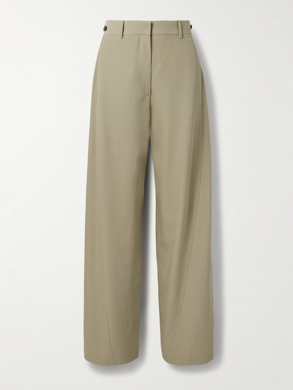 The Row's 'Elowyn' pants are designed with curved seams along the straight legs that emphasize their flowy, relaxed shape. Tailored from beige wool-gabardine, they have a high waistband with adjustable tabs to ensure the most comfortable fit.
