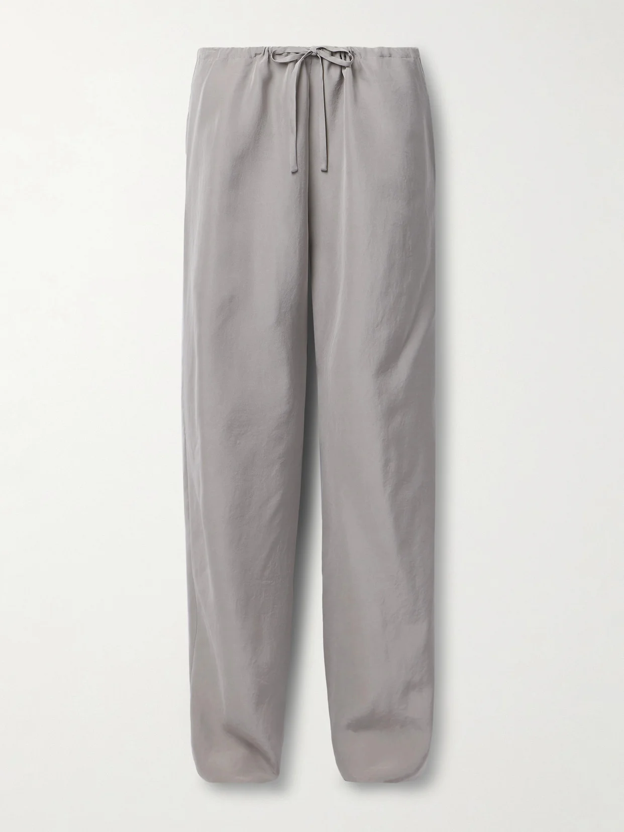 When designing The Row's collections, Mary-Kate and Ashley Olsen focus on how the fabric feels and falls on the body. These 'Jugi' pants are made from fluid silk that has a beautiful luster and drape. They have wide legs and a drawstring waistband you can adjust for added comfort.