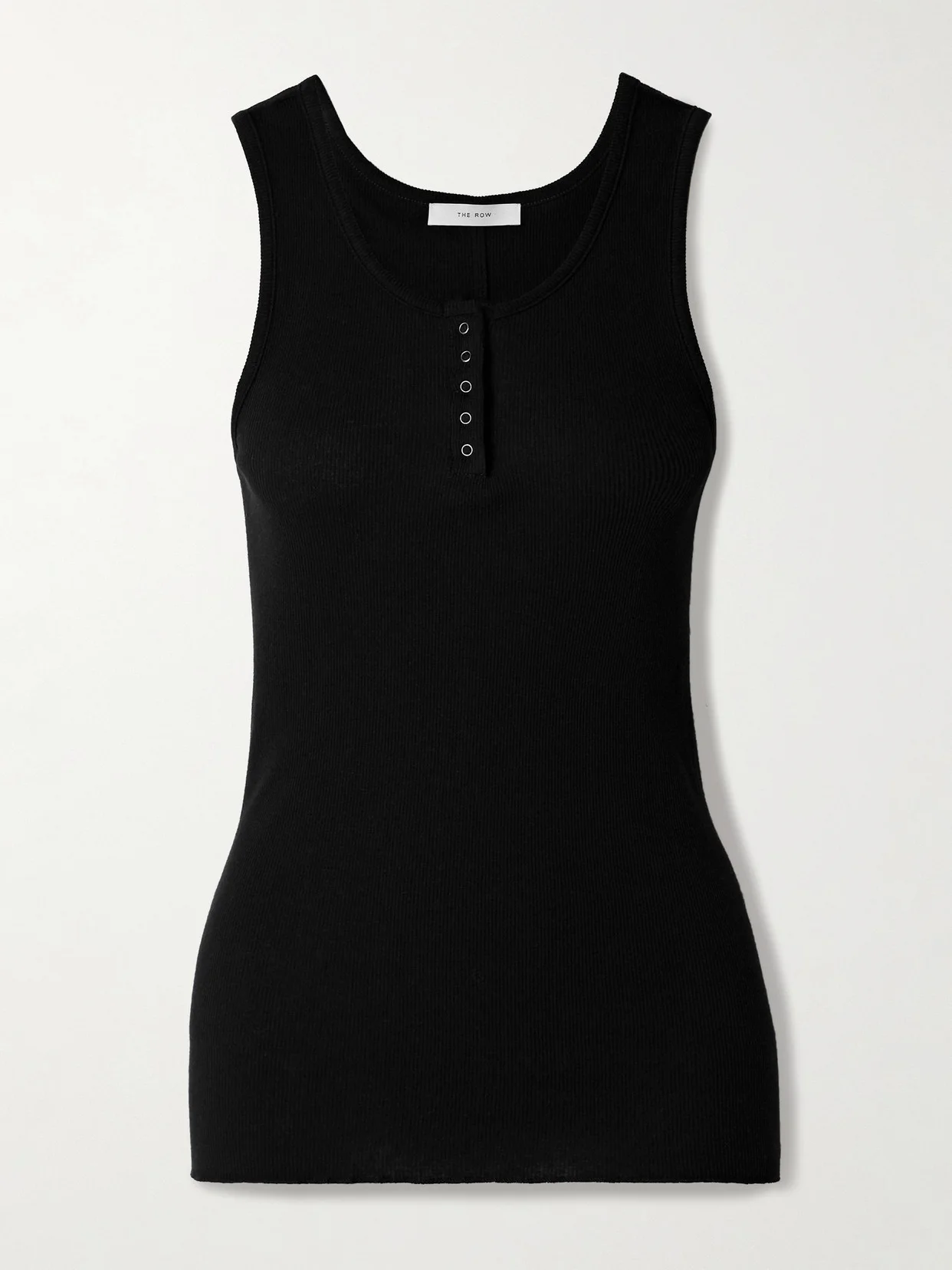 The Row's 'Mansel' tank is a versatile piece you'll find yourself wearing often. It's been made in Italy from a black cotton-blend and has a close fit and finely ribbed finish. Leave a few snaps undone to create a V-neckline.
