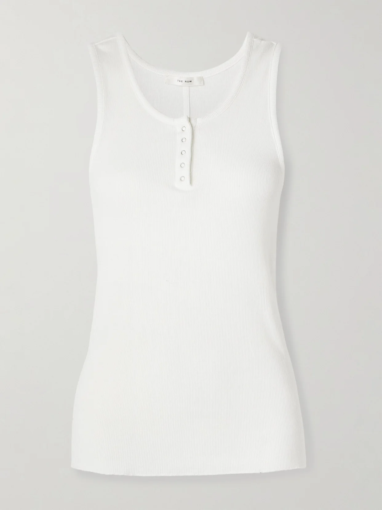 The Row's 'Mansel' tank is a versatile piece you'll often wear. It's been made in Italy from a white cotton-blend and has a close fit and finely ribbed finish. Leave a few snaps undone to create a V-neckline.