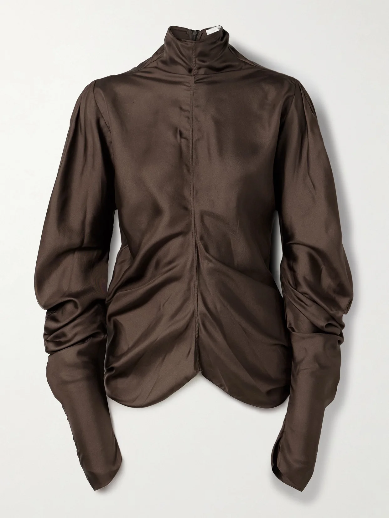 The Row's 'Miles' blouse captures the brand's elevated approach to everyday dressing. It's cut from fluid silk-twill that's softly gathered along the seams and sleeves and has a mock neckline. Tuck it into tonal tailoring or a pleated skirt for an elegant look.