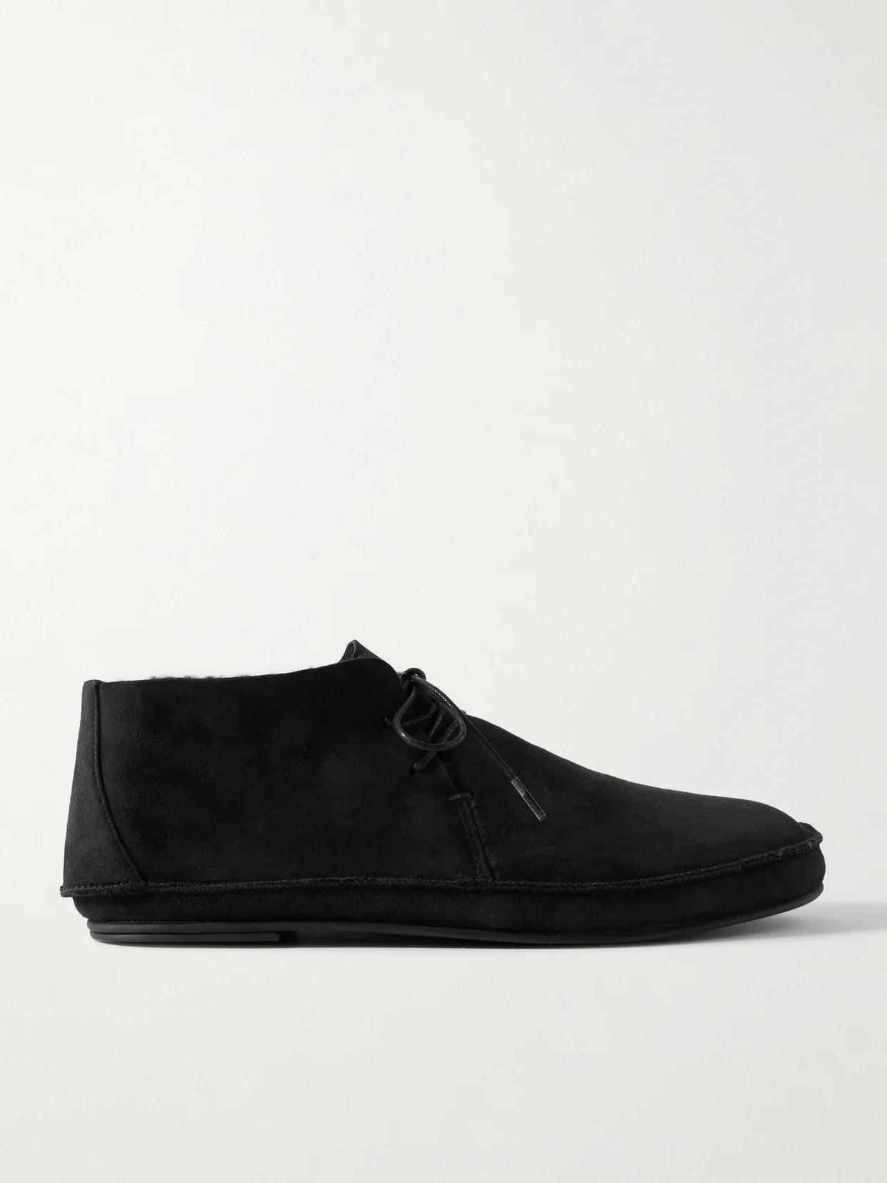 The Row's 'Tyler' ankle boots are made from suede and lined in shearling, so they feel equally soft inside and out. Modeled after classic desert styles, they have an unstructured design that offers slipper-level comfort. Our edit includes light-brown and beige pairs, too.