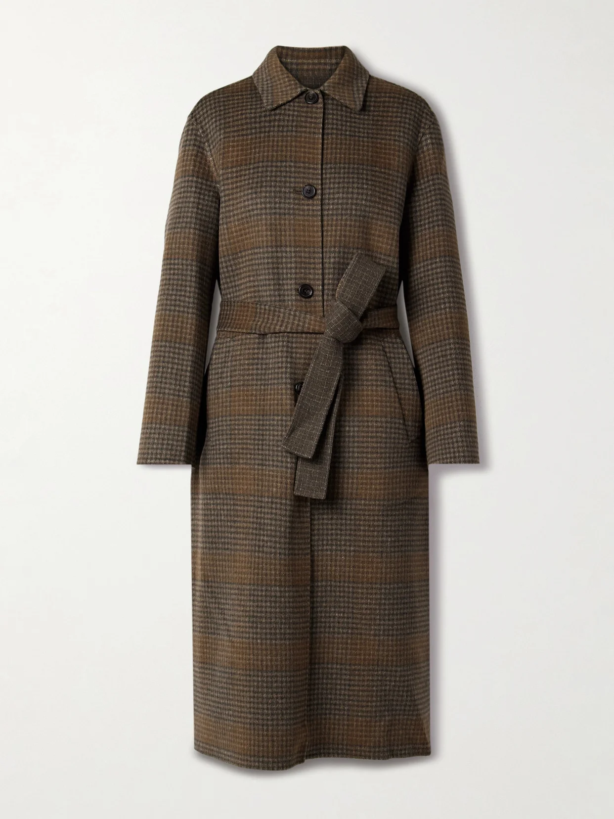 Belted Checked Wool And Cashmere-blend Coat