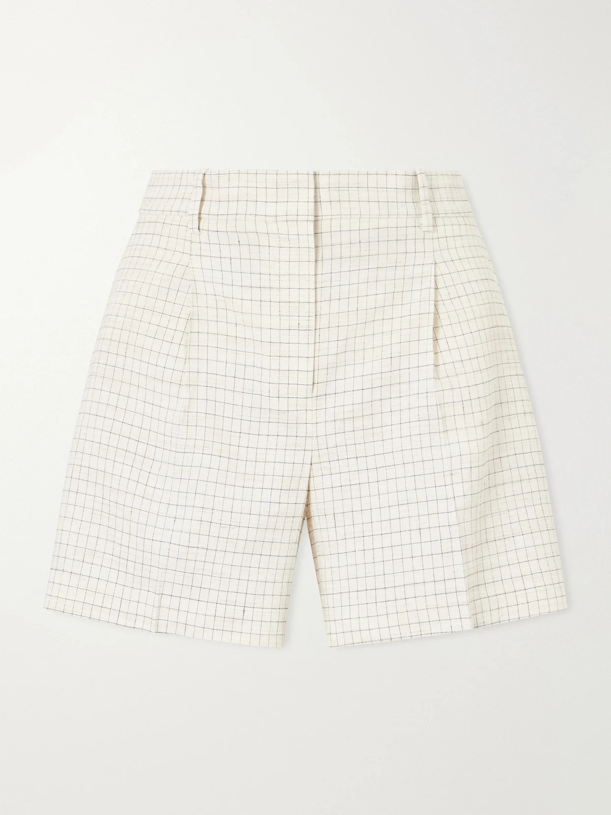 Theory's designs are sleek, versatile, and effortlessly polished. These shorts are crafted from a linen-blend in a checked motif, sitting high at the waist with pleated, roomy legs. Pair them with a blouse and ballet flats for an elegant, refined look.