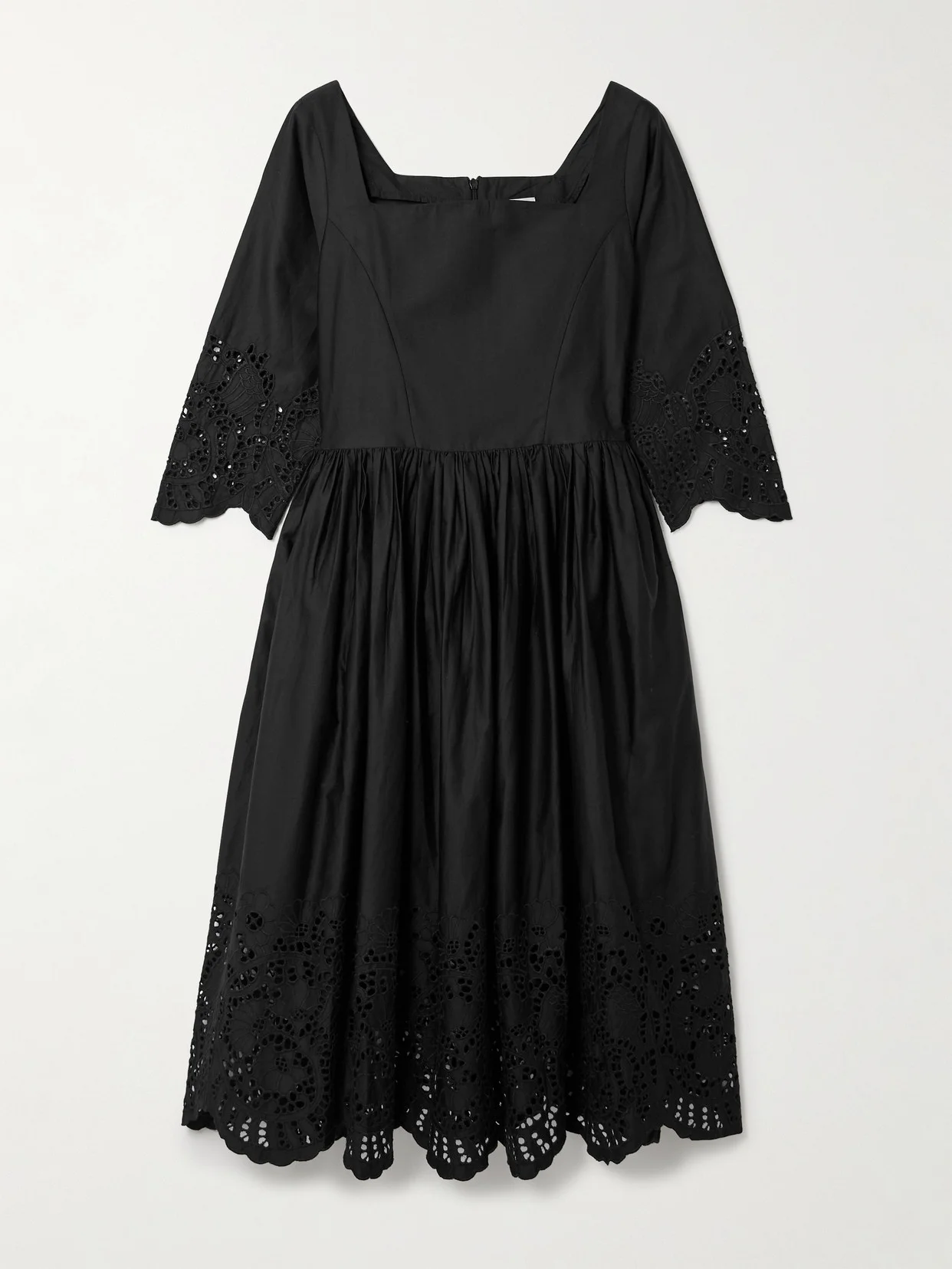 Amalia pleated broderie anglaise cotton-poplin midi dress Black