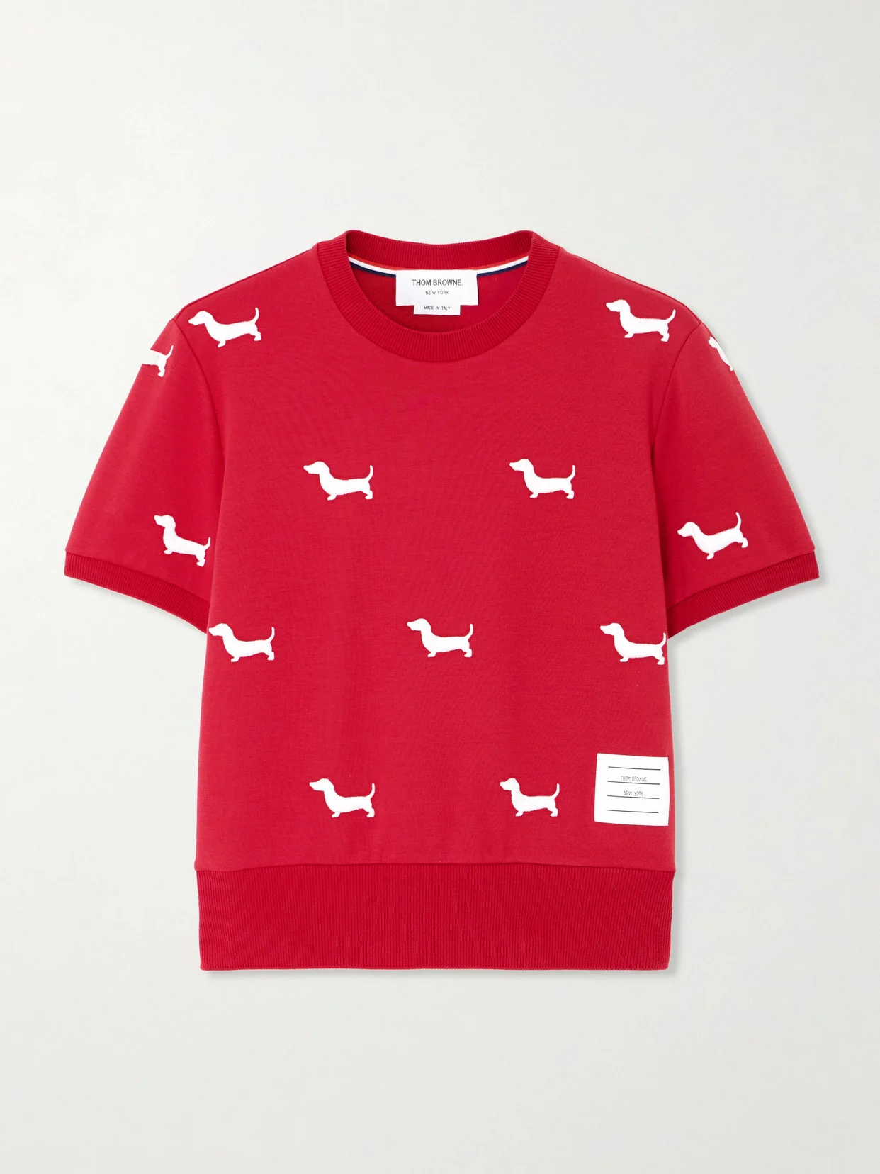 Thom Browne's T-shirt is embroidered with dachshunds, modeled after the designer's beloved own dog named Hector. It's made from soft cotton and has ribbed trims and a signature logo applique at the hem.