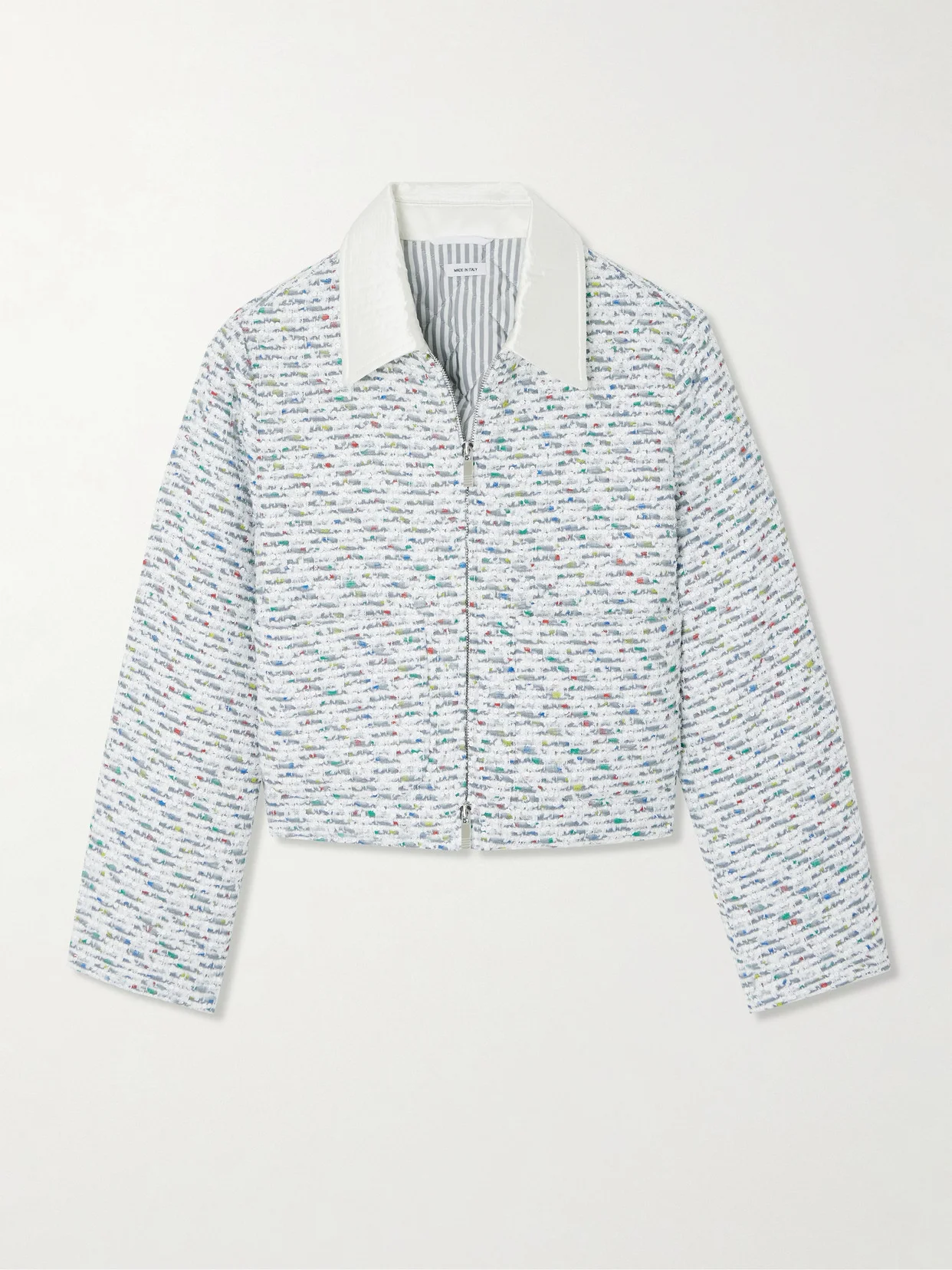 Thom Browne's jacket is made from tweed that's threaded with sequins to further enhance the tactile feel and add a light-reflecting finish. It's trimmed with a silk collar and filled with an insulating down-blend for warmth.