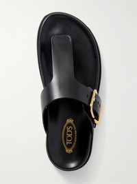 Tod's sandals have wide straps and a single gold-tone buckle that allows you to adjust them subtly. They've been made in Italy from soft leather and rest on molded footbeds and the signature pebbled soles. Size & Fit - Fits true to size, take your normal size - Only available in full sizes, go up to the nearest whole size if you take a half size - Italian sizing Details & Care - Slight heel - Black leather (Calf) - Slip on