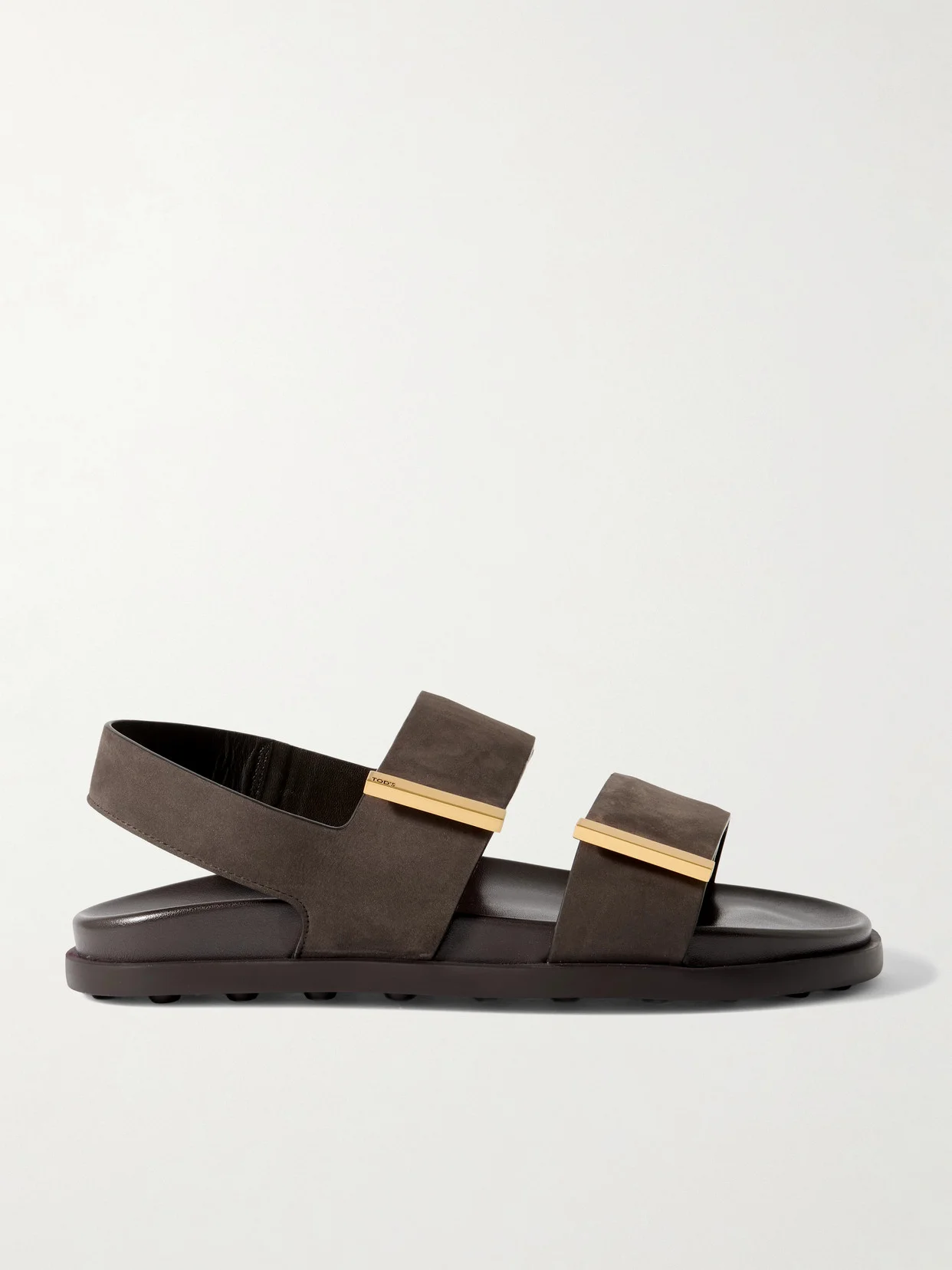Tod's sandals are made in Italy from smooth nubuck with thick straps and gold-tone tips. They're set on anatomical footbeds with EVA outsoles, offering plenty of support. Turn them over to reveal the signature pebbled soles.
