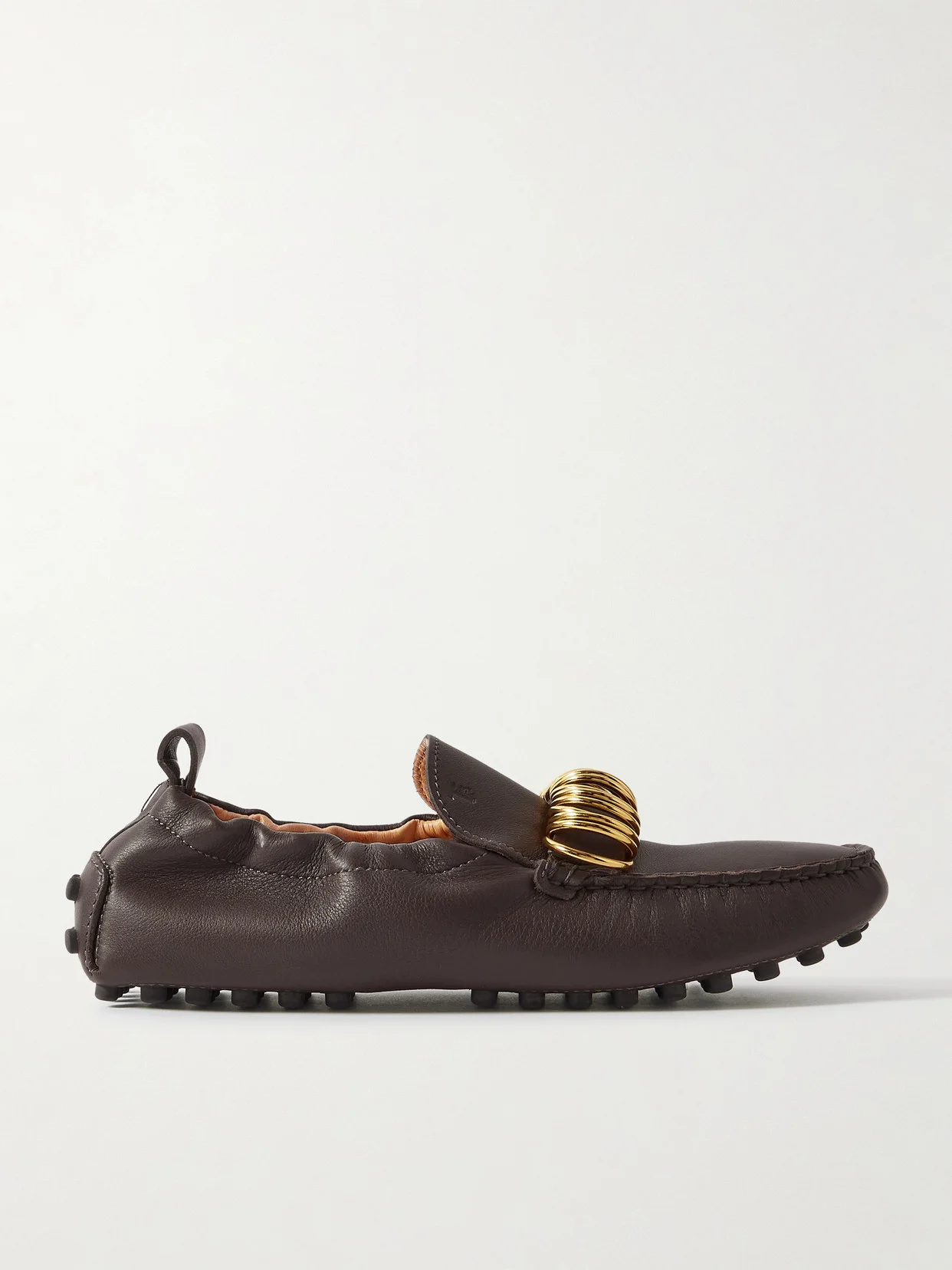 Tod's '22L' loafers are updated with gold-tone rings along the penny strap. They've been made in Italy from supple leather and are set on the signature pebbled soles.