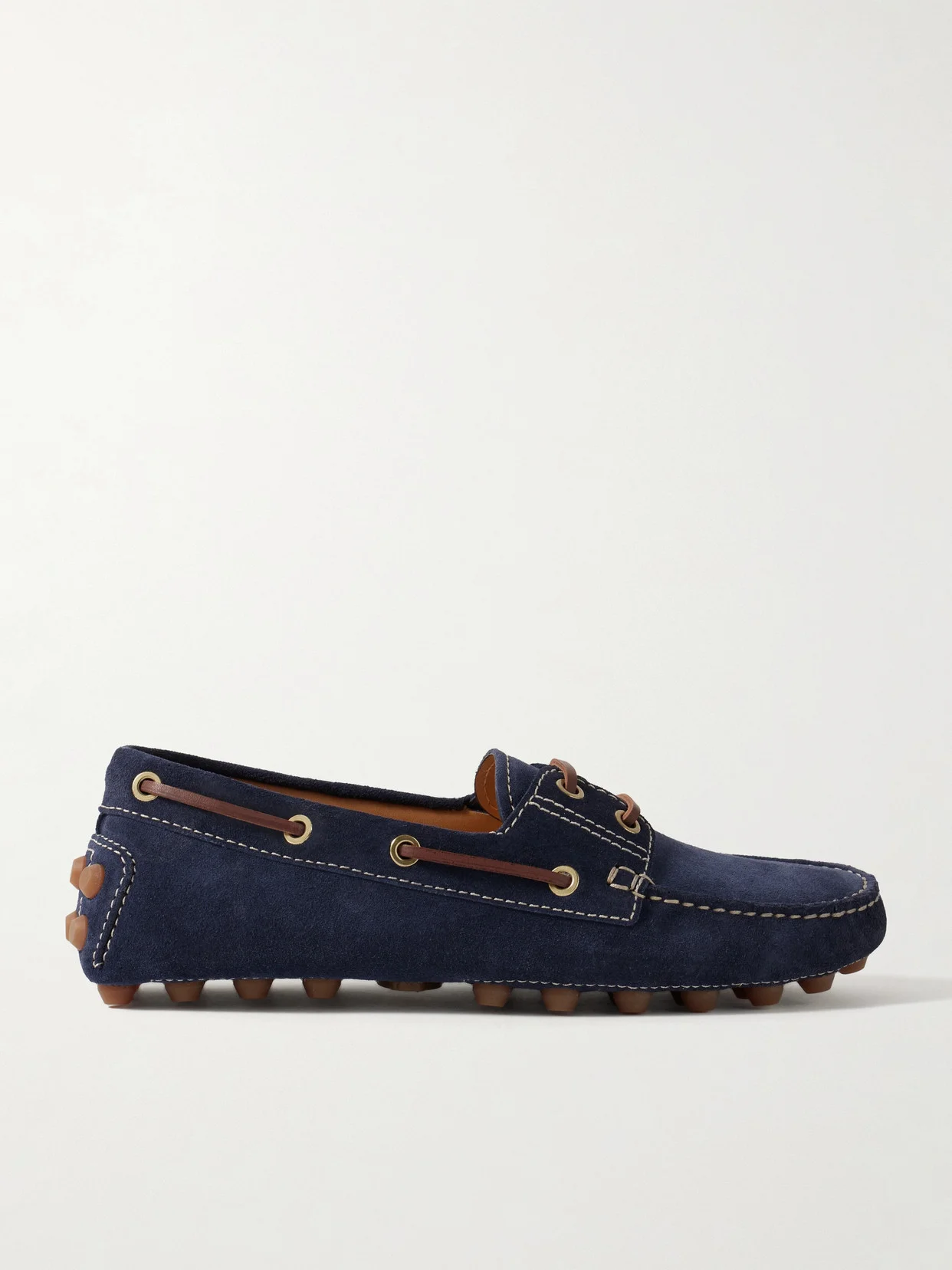 Tod's loafers feature an exaggerated 'Macro' version of the signature 'Gommino' pebbles on the soles, which add a little extra lift and grip. They've been made in Italy from navy suede and are threaded with contrasting leather strings through the gold-tone grommets. Dress them down with jeans.