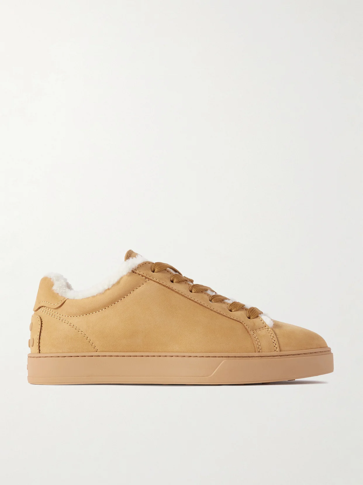 Tod's sneakers have been crafted in Italy from tan suede and lined with fluffy shearling. The brand's logo is stamped on the tongue and they're set on durable rubber soles.
