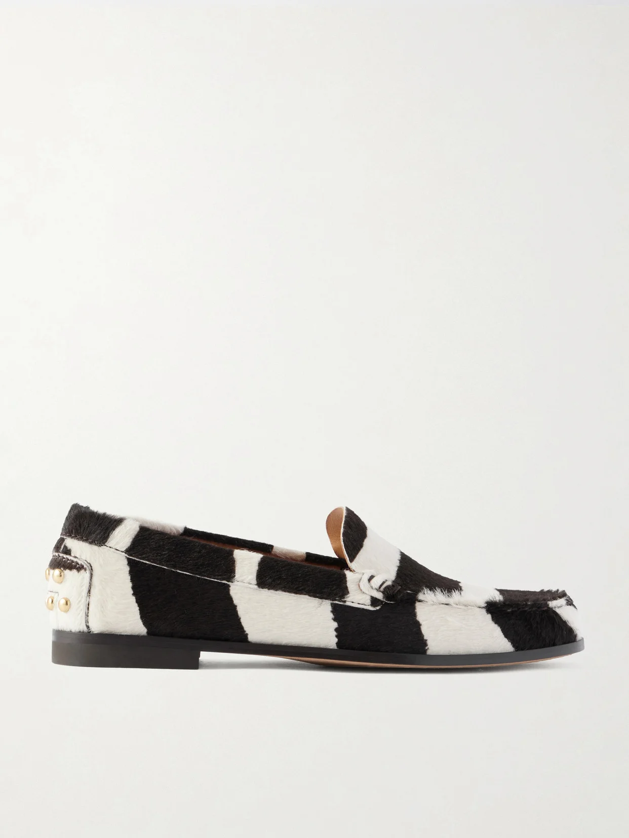 Studded Zebra-print Calf Hair Loafers