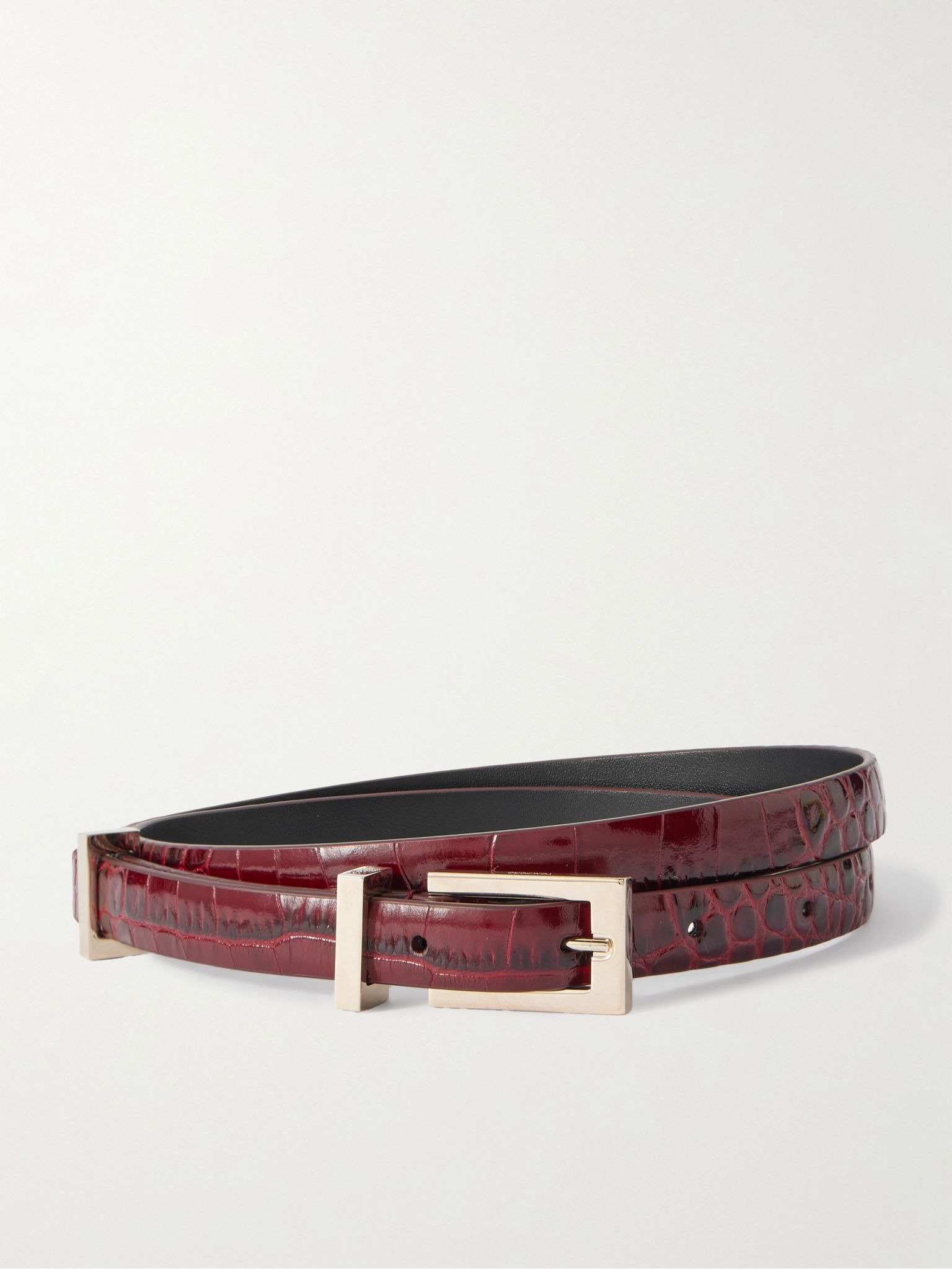 TOM FORD's belt is made from glossy patent-leather with croc-effect scales and a polished gold-tone buckle. It's slim enough to loop through the waistband of your jeans or tailored pants. Size & Fit - Designed to be worn on the waist - Measurements can be found in the link below Details & Care - Red croc-effect patent-leather (Calf) - Buckle fastening