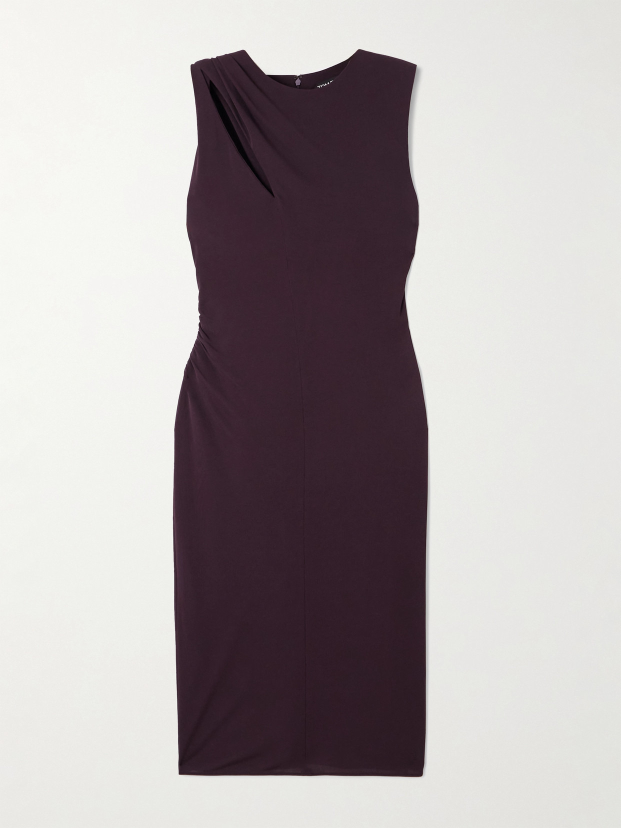 TOM FORD's knee-length dress has an alluring cutout at one shoulder and draped panel that cascades at the back, enhancing the elegance of the design. It's made from jersey in a rich dark-purple shade and will look chic with metallic accessories at your next cocktail party.