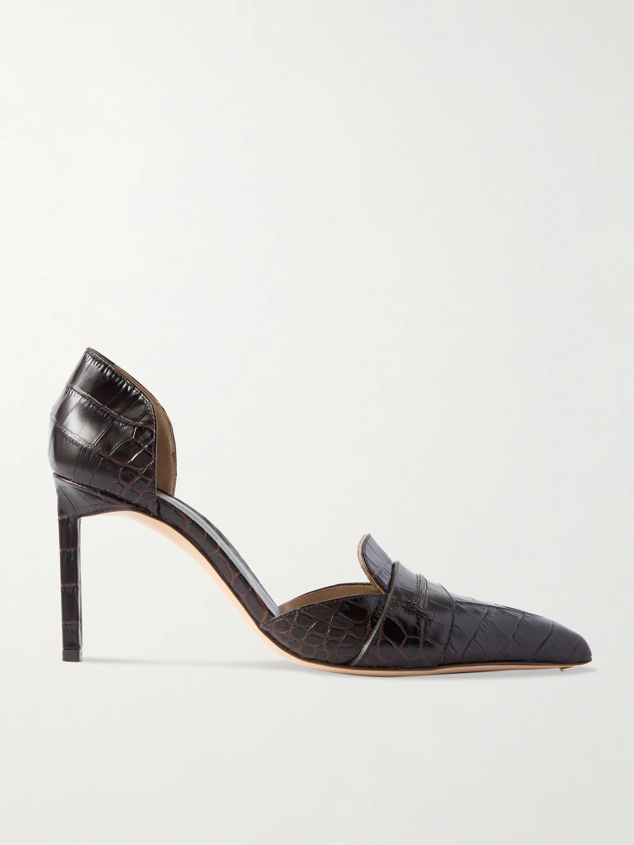 Eva D'orsay Glossed Croc-effect Leather Pumps