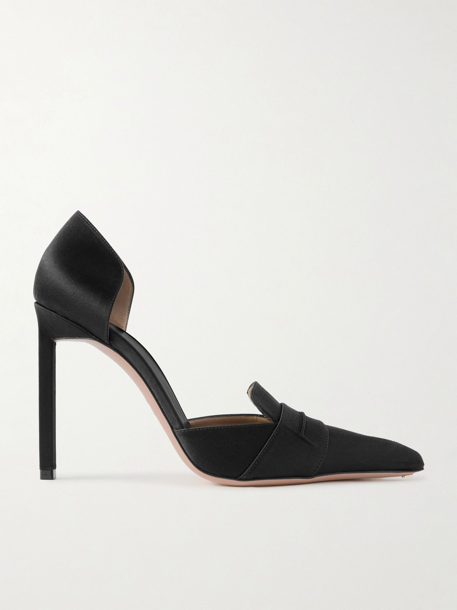 TOM FORD's 'Eva D'Orsay' pumps were seen on the Fall '25 runway. Made from smooth satin, they have loafer-style vamps, slender pointed toes and 105mm stiletto heels. Size & Fit - Fits true to size, take your normal size - Italian sizing Details & Care - Heel measures approximately 105mm/ 4 inches - Black satin - Slip on