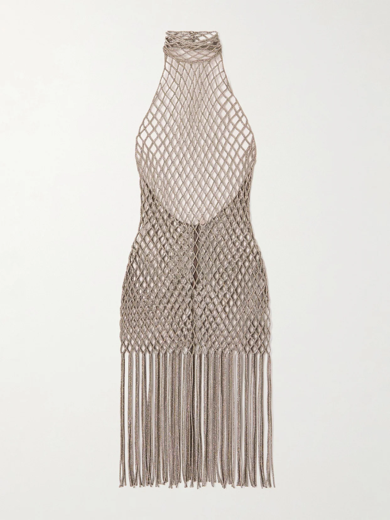 Fringed Crystal-embellished Cord Halterneck Mini Dress