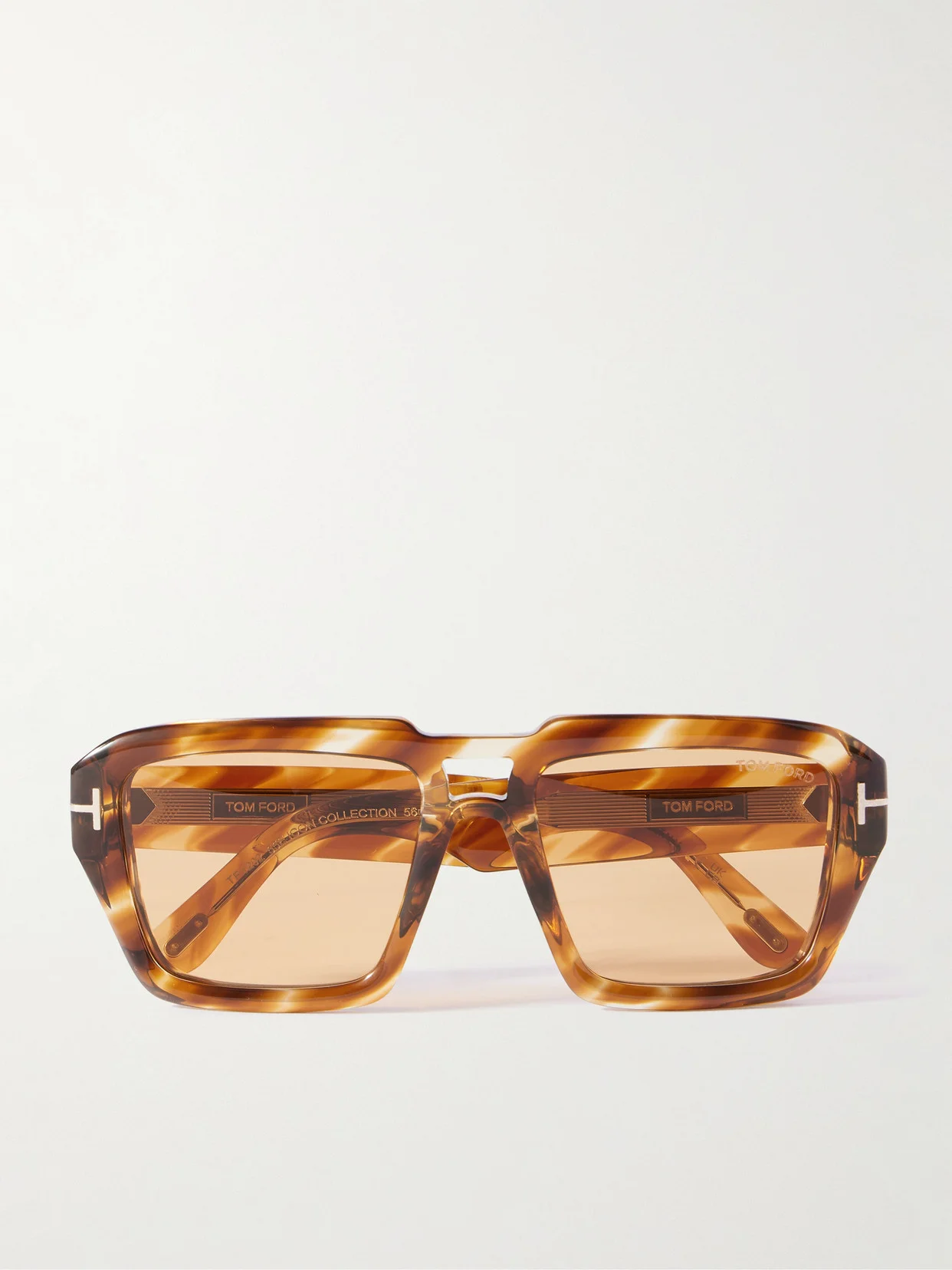 Sunglasses are an easy way to dial up the ante, especially when they're as sleek as TOM FORD Eyewear's. This ‘Icon' pair is made from heathered tortoiseshell acetate with bold square frames, a double bridge and light-brown lenses. Spot the signature ‘T' emblems at the temples.