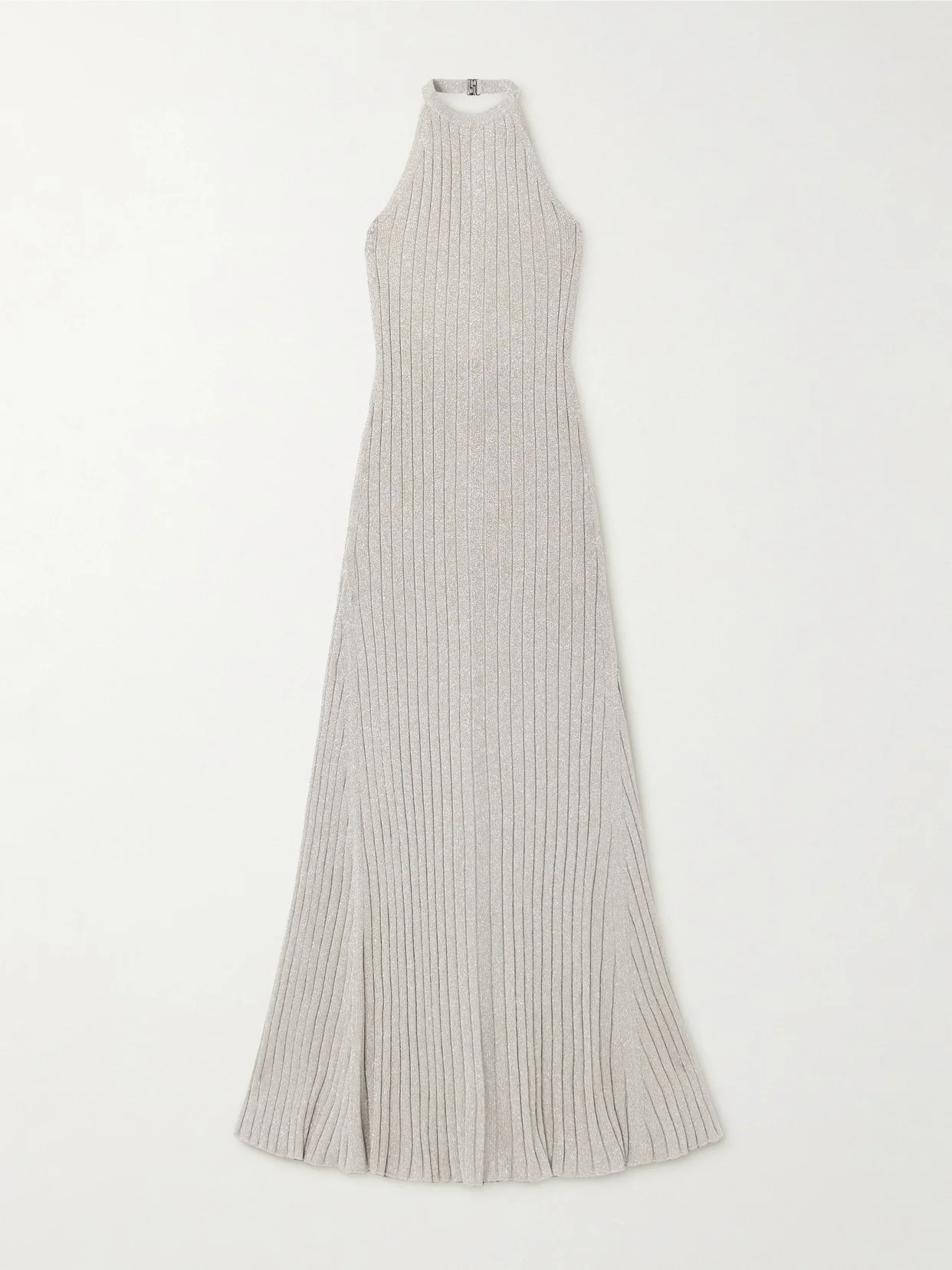 Metallic Ribbed-knit Halterneck Maxi Dress