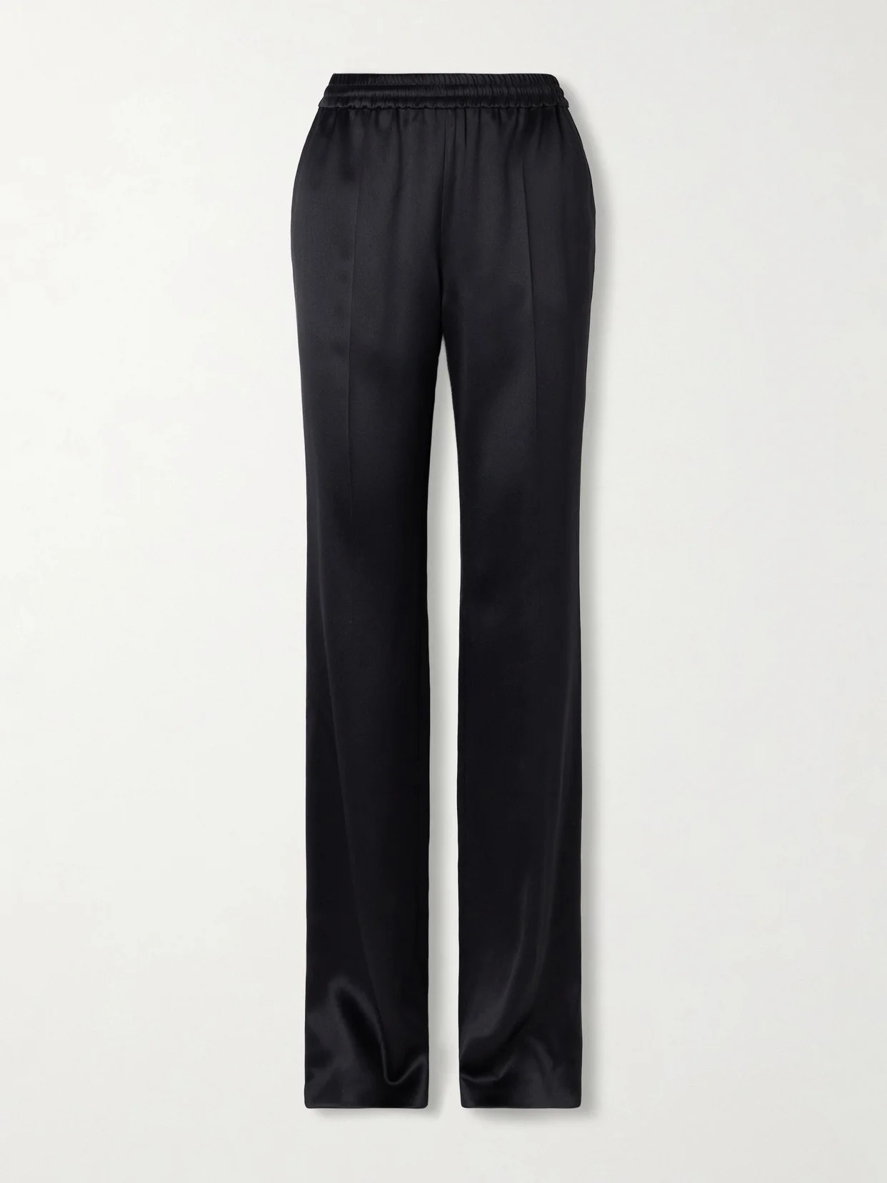 TOM FORD is a master of refining wardrobe essentials. These pants are modelled on sporty joggers with a comfortable elasticated waistband, but cut from glossy silk-satin. Pressed creases define the straight shape.