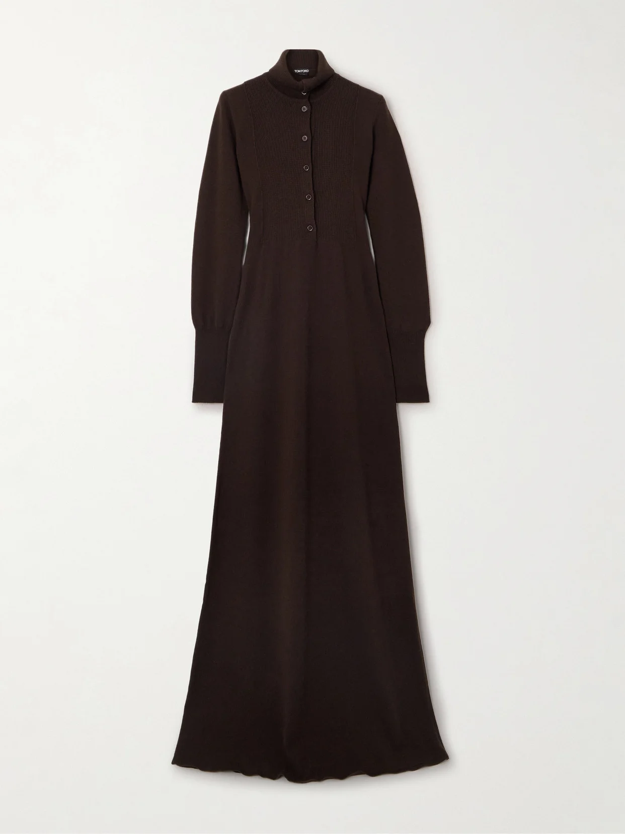 TOM FORD's turtleneck maxi dress combines the comfort of knitwear with an elegant shape. It's made from soft, insulating cashmere that's finely ribbed along the yoke and falls to a floor-skimming hem. Lustrous mother-of-pearl buttons add a sense of polish.