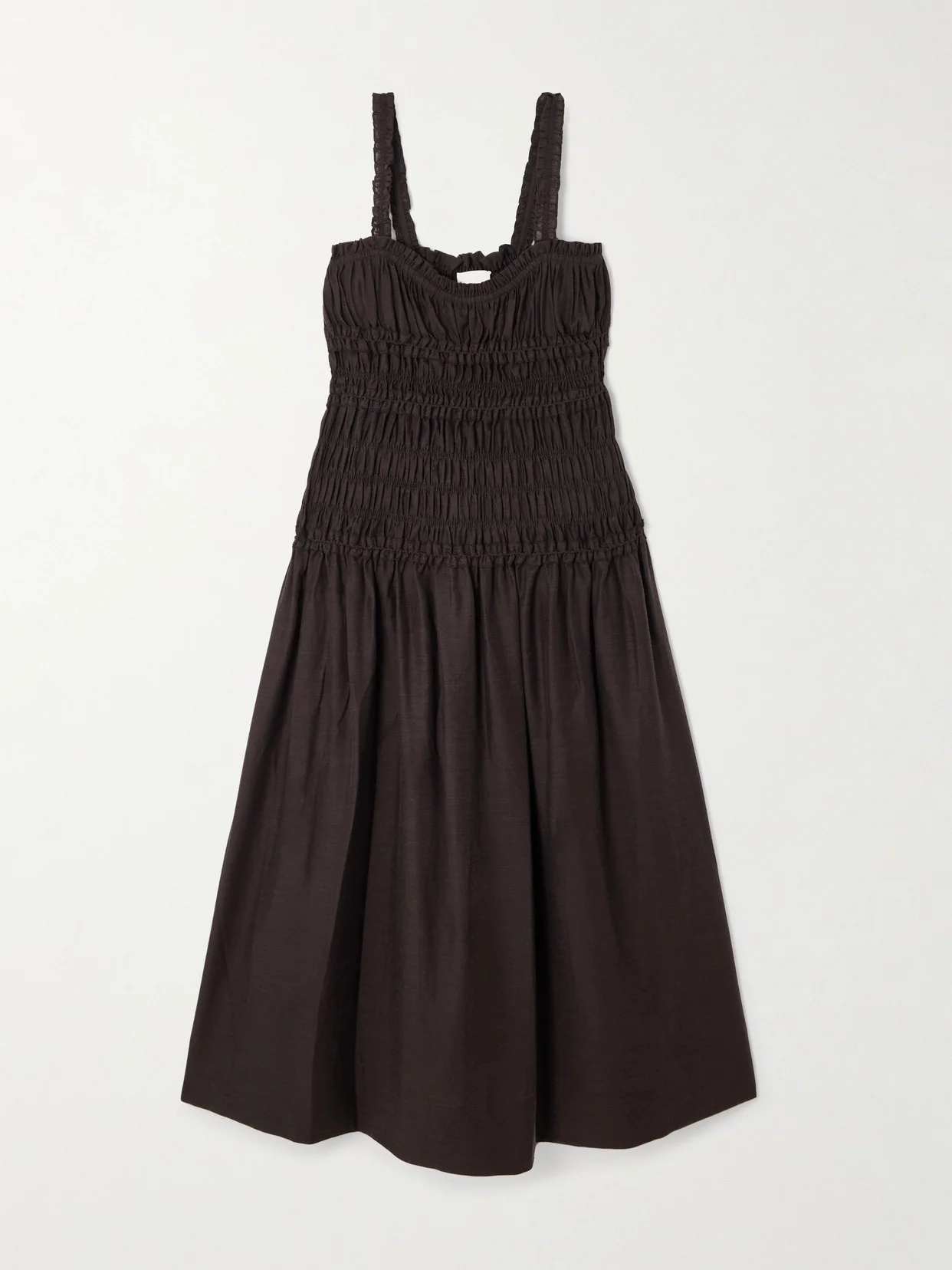 Ruffled Shirred Lyocell-blend Voile Midi Dress