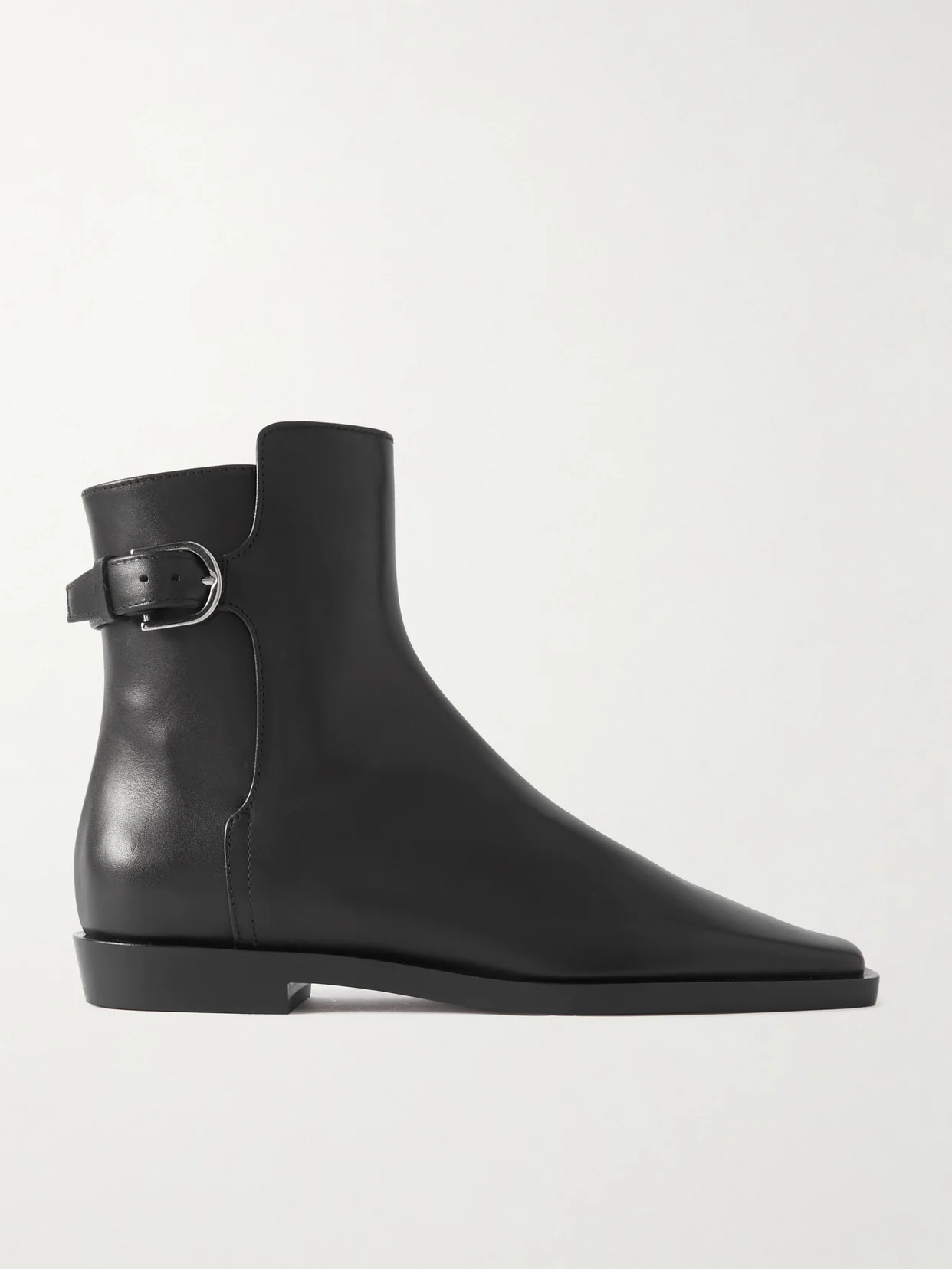 TOTEME's boots are 'Belted' at the back for a subtle adjustment to the sleek shape. Resting on a slight heel, they're made from leather in a clean, angular shape and have a tapered square toe. This product was created using Considered Processes. Find out more about NET SUSTAIN here.