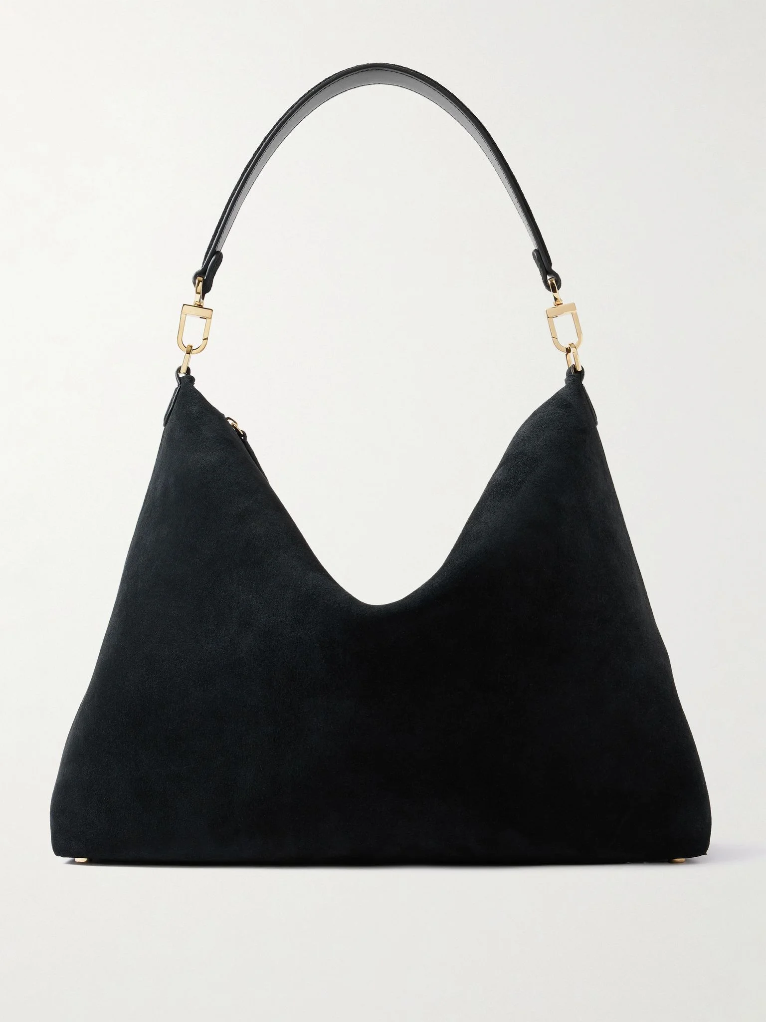 TOTEME's chic and minimal 'Bevel' tote will complement a range of outfits, so it's sure to become your new go-to. It's made from smooth suede with a slouchy profile and has plenty of space for your phone, make-up pouch and cardholder. It's finished with protective metal feet at the base. Details & Care - Black suede (Cow) - Detachable top handle - Brushed synthetic material lining - Zip fastening along top - Weighs approximately 2.2lbs/ 1kg