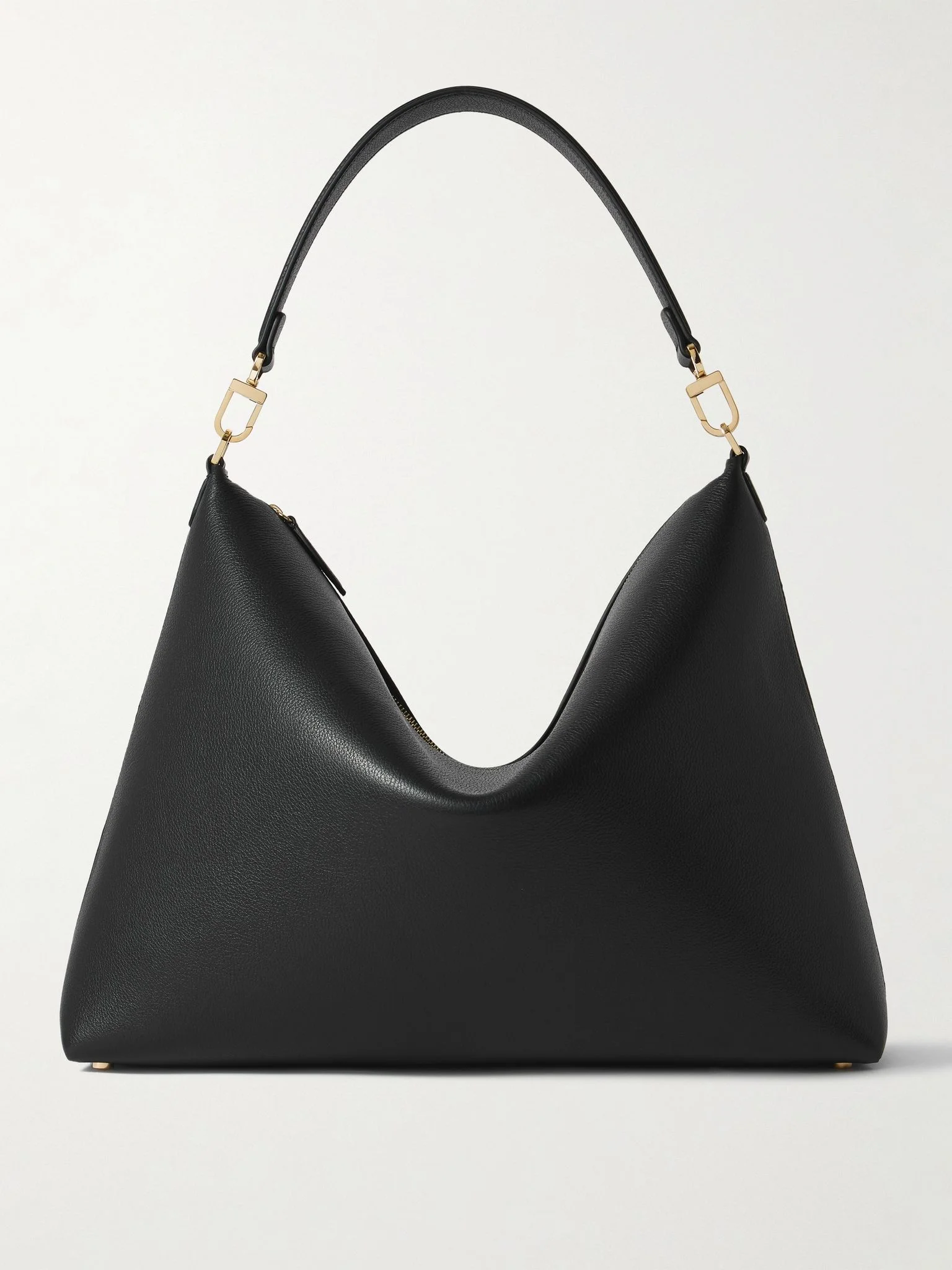 The soft, geometric profile of TOTEME's tote earns its 'Bevel' namesake. It's crafted from supple leather, fixed to a sturdy top handle and minimally detailed with foiled, debossed logos to match the gold-tone hardware. Its generous proportions fit full-size tech, a change of shoes and a hardback book for your commute. Details & Care - Black textured-leather (Cow) - Detachable top handle - Brushed synthetic material lining - Zip fastening along top - Weighs approximately 2.2lbs/ 1kg