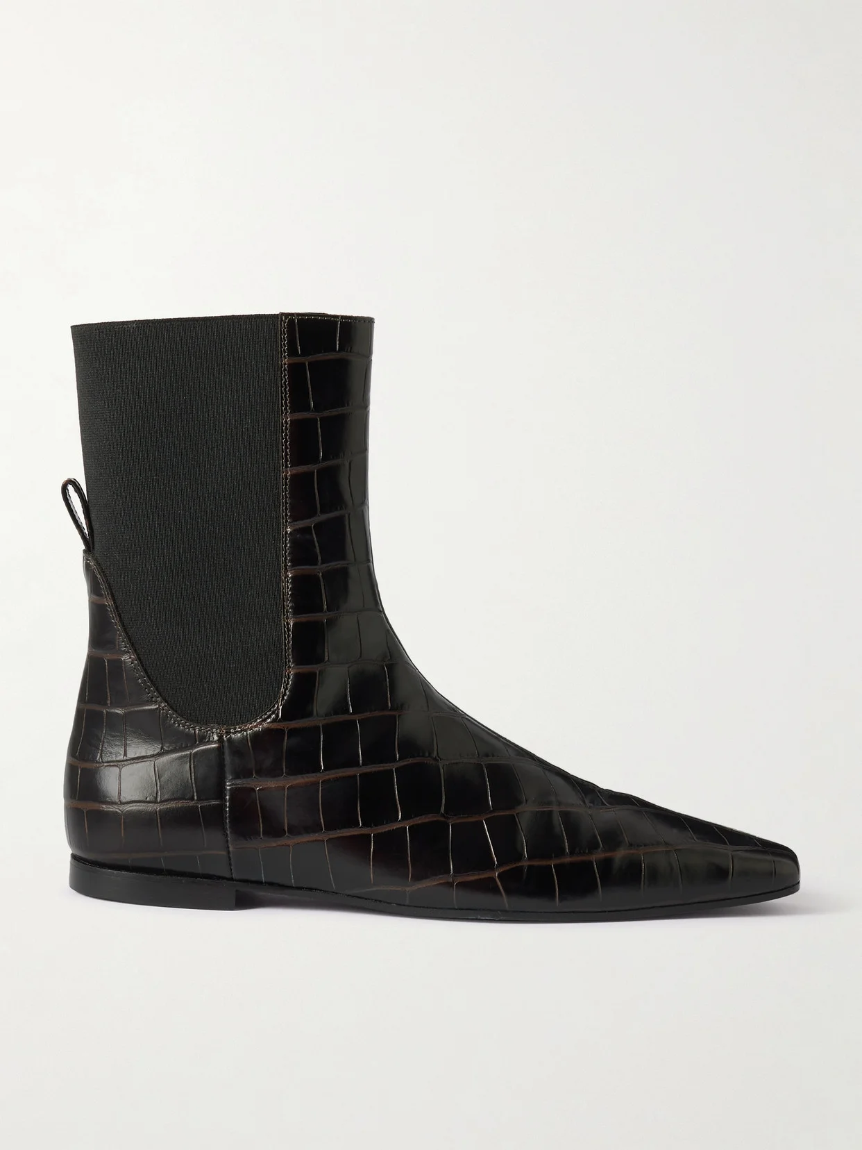 TOTEME's boots nod to Chelsea styles, but here, the classic elasticated side panel wraps around the back. They're made from croc-effect leather and have squared, elongated toes.