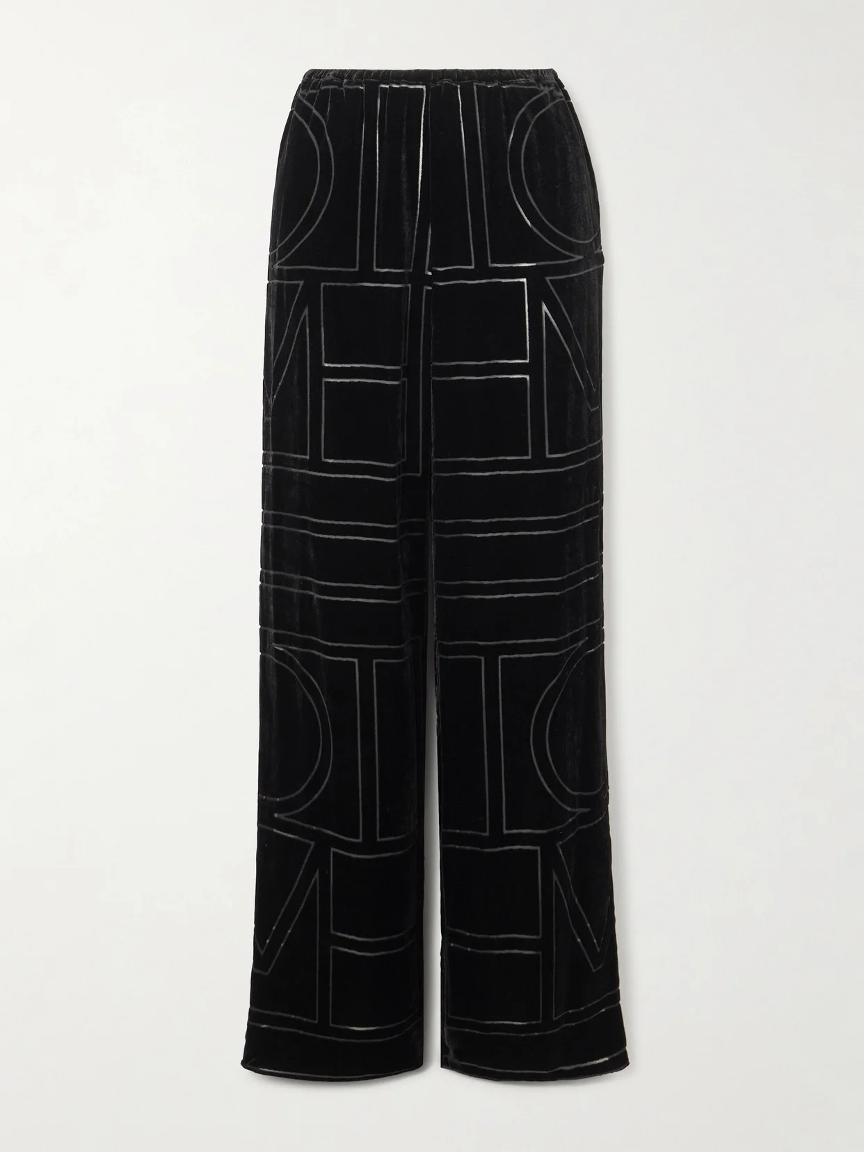 TOTEME's pants are patterned with the house's monogram. Inspired by pajamas, they're cut from devore-velvet in an easy, wide-leg fit.