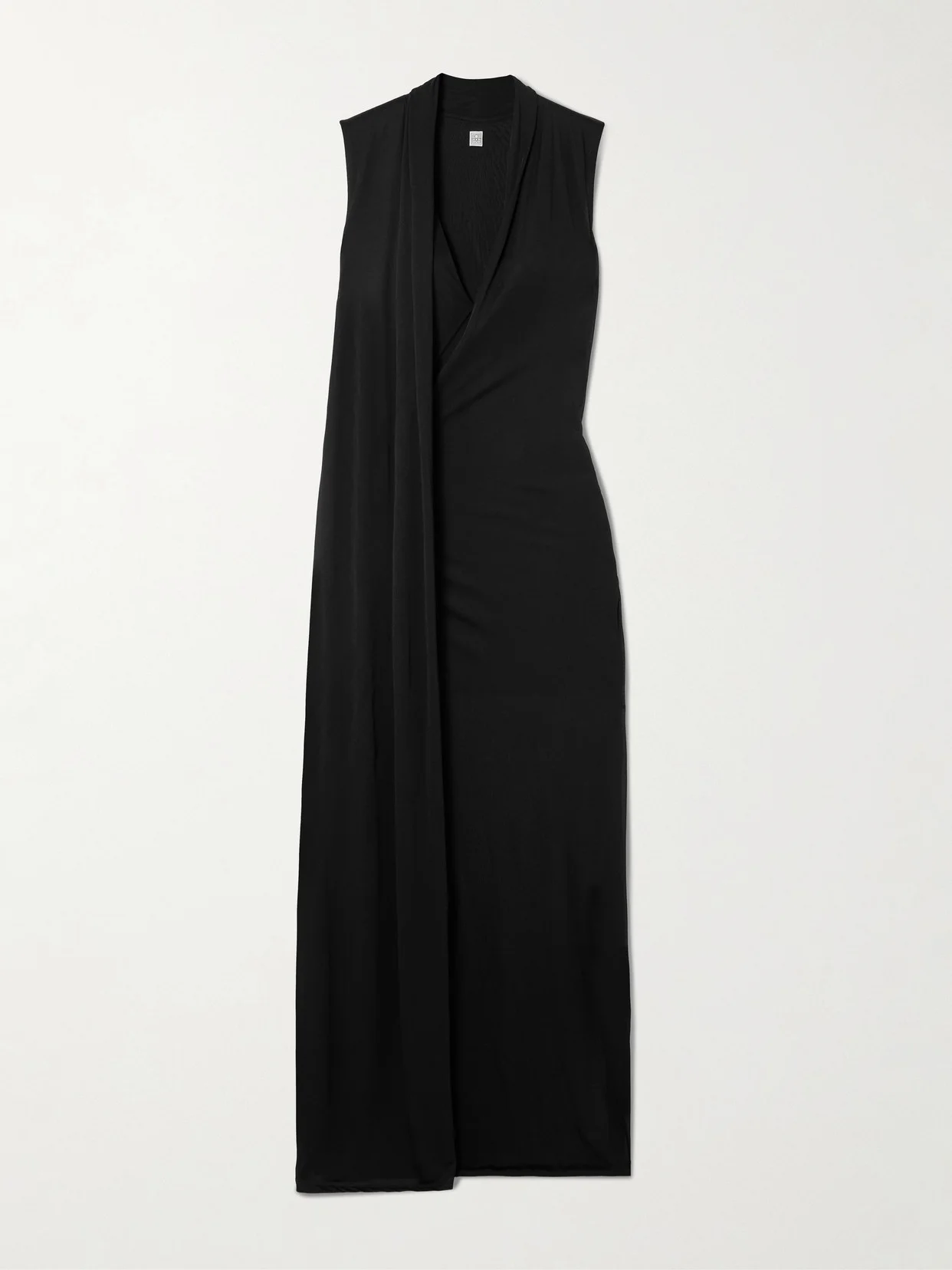TOTEME's maxi dress is designed with a sweeping draped panel that cascades from the shoulder to a floor-skimming length. It's made from jersey and has a wrap-effect bodice and partial lining that ensures coverage. Keep accessories simple to stay in line with the label's minimalist ethos.