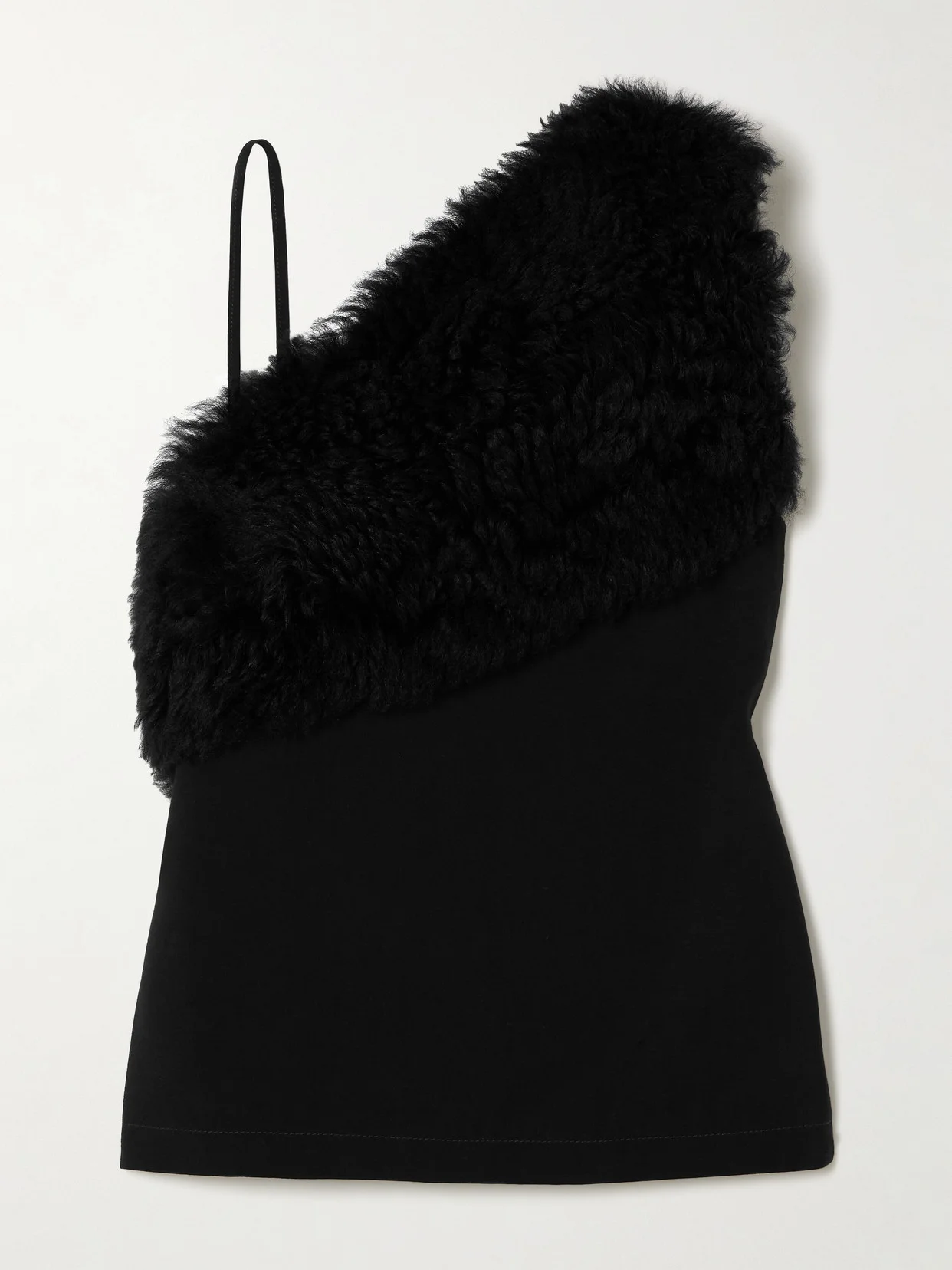 While TOTEME's clothing typically leans on the more minimal side, the brand understands that sometimes it's the little details that make all the difference. This jersey top has a sweeping asymmetric neckline that's traced with shearling for a glamorous feel. Style yours with straight-leg pants and mules.