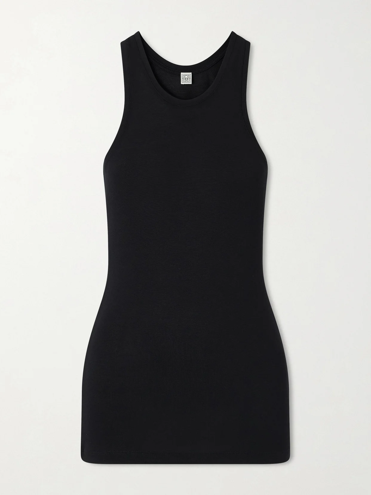 TOTEME's tank will soon become a foundational staple in any wardrobe. It's cut from versatile black jersey and is defined by curved lines. The sporty high crew neckline is perfect for layering chains or necklaces.