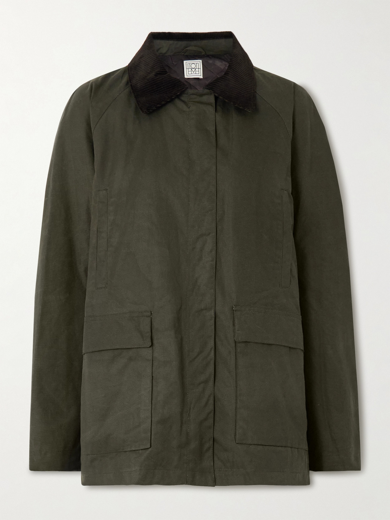 Oversized Corduroy-trimmed Waxed Organic Cotton Jacket