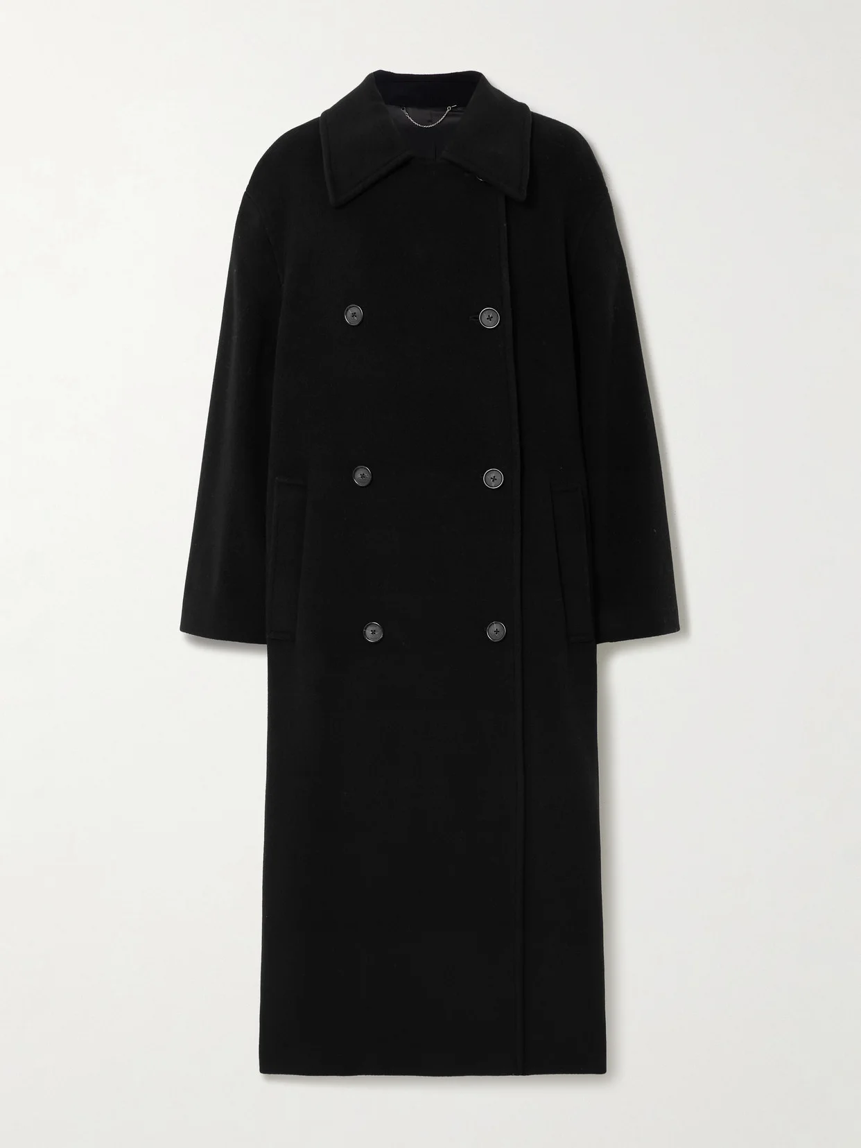TOTEME's 'Shield' coat is aptly named for its ability to protect you from the elements. Tailored from a wool-blend, it has an enveloping shape with a double-breasted front and wide collar. The satin lining ensures you can layer it comfortably over knitwear, while the dropped shoulders create a relaxed look.
